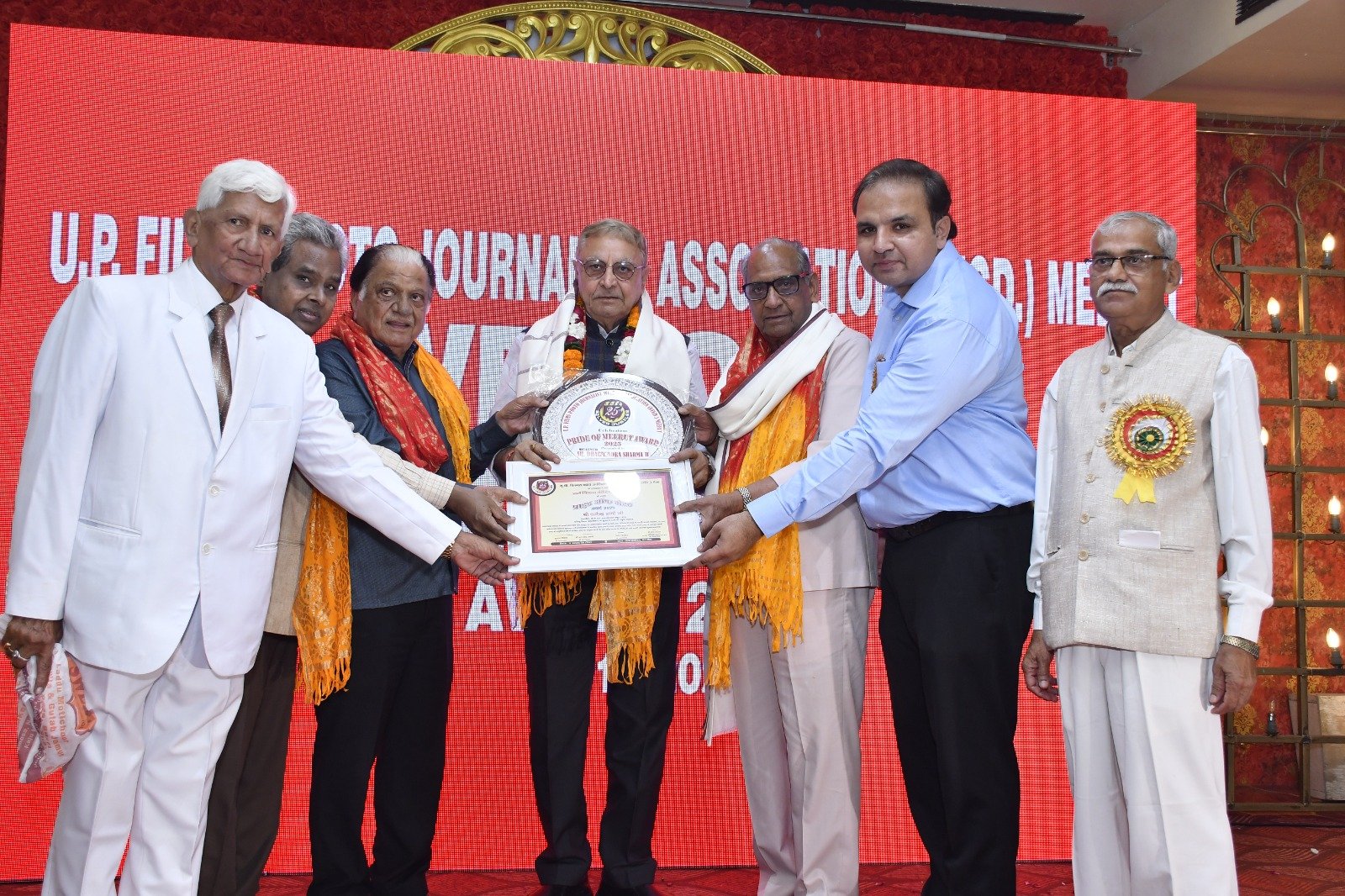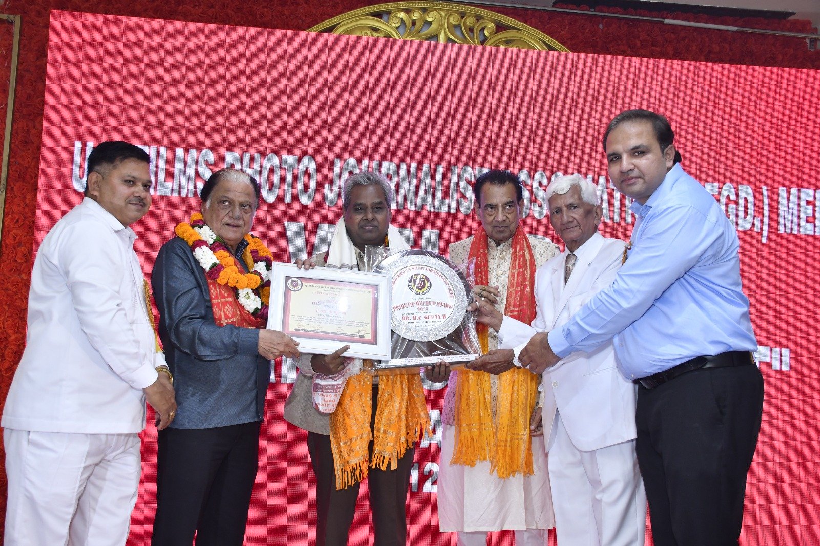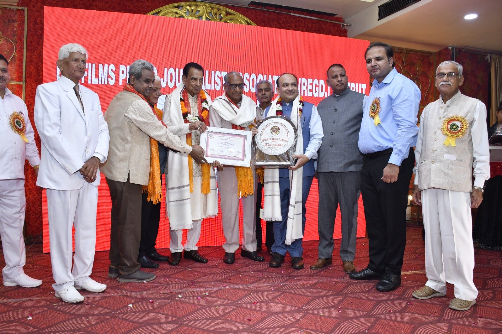 मेरठ। रविवार को यू.पी. फिल्म्स फ़ोटो जर्नलिस्ट वेलफेयर एसोसिएशन द्वारा अपना 25वां लब्ध प्रतिष्ठित फ़िल्म मीडिया अवार्ड समारोह ‘सिल्वर जुबिली’ के रूप में होटल डी-रोजेज, सेंट मैरी स्कूल के सामने, मेरठ कैंट में धूमधाम से मनाया गया। इस अवसर पर मेरठ शहर की विभिन्न क्षेत्रों में विशेष कार्य करने वाली प्रमुख हस्तियों को शॉल, स्मृति चिह्न एवं पुष्प गुच्छ देकर सम्मानित भी किया गया।