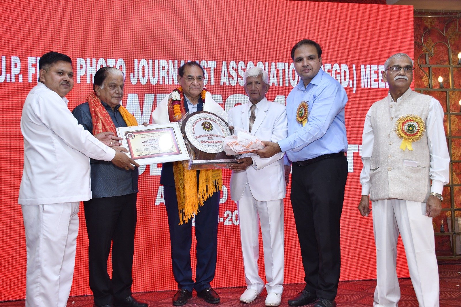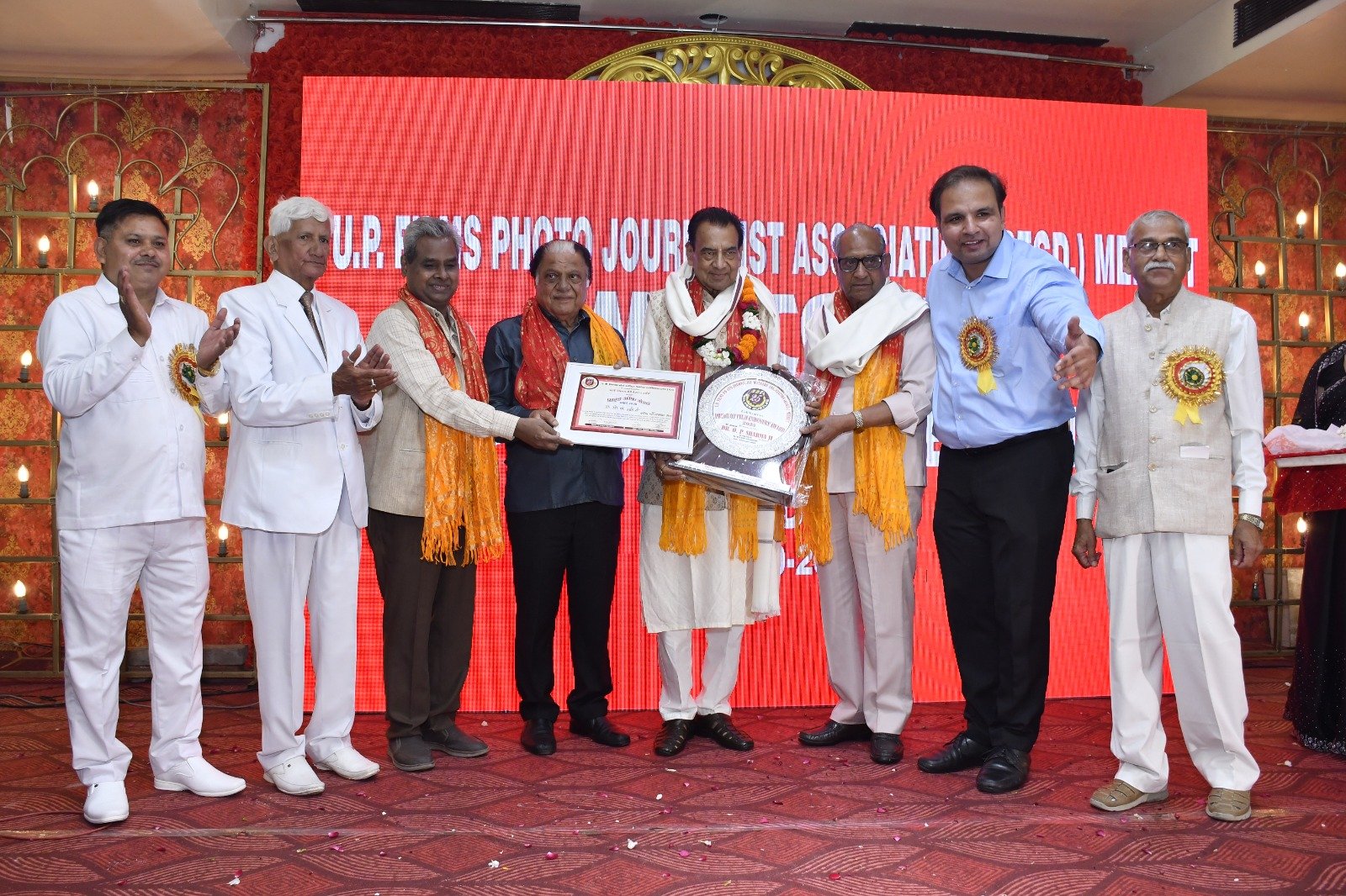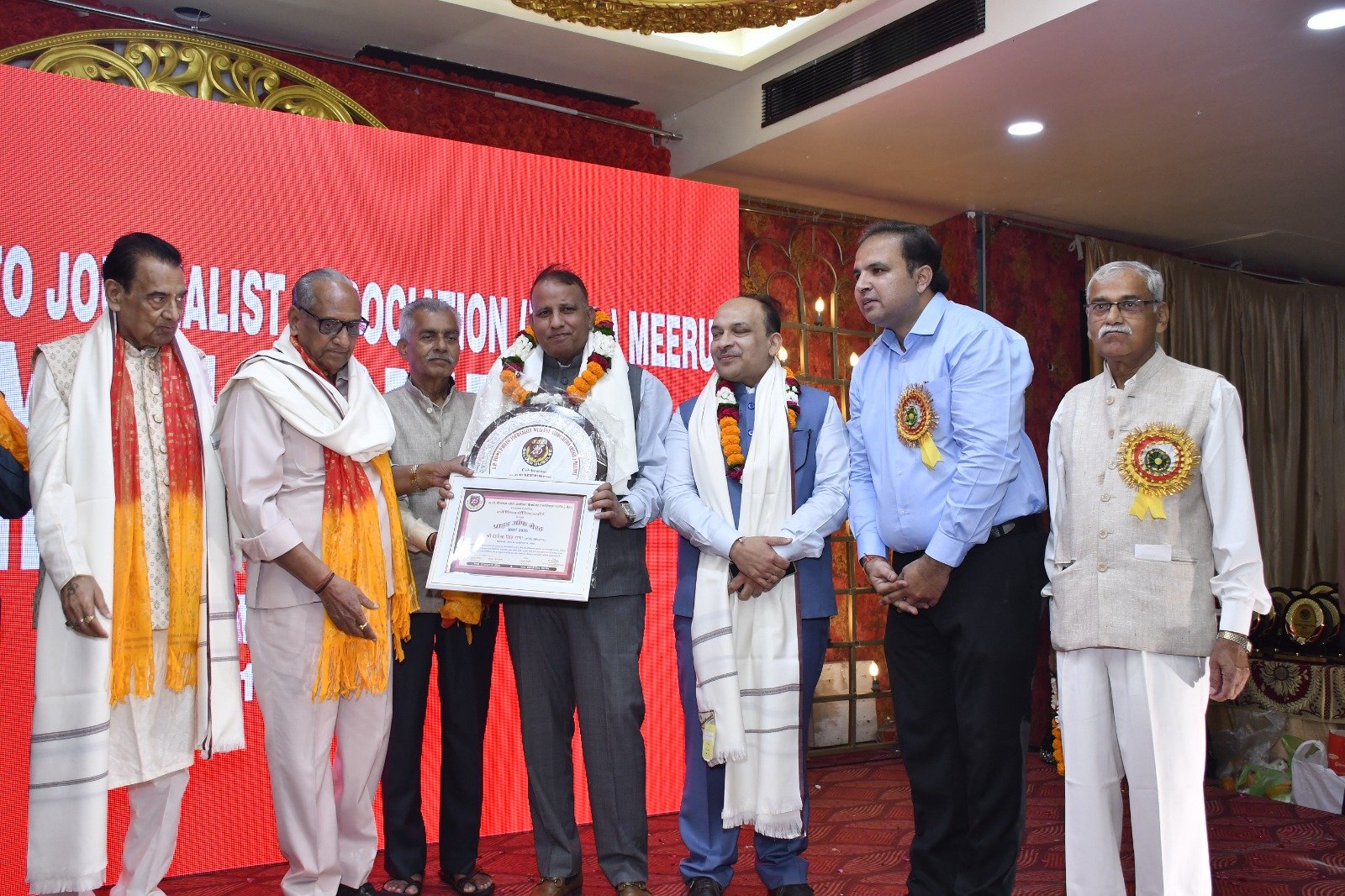 मेरठ। रविवार को यू.पी. फिल्म्स फ़ोटो जर्नलिस्ट वेलफेयर एसोसिएशन द्वारा अपना 25वां लब्ध प्रतिष्ठित फ़िल्म मीडिया अवार्ड समारोह ‘सिल्वर जुबिली’ के रूप में होटल डी-रोजेज, सेंट मैरी स्कूल के सामने, मेरठ कैंट में धूमधाम से मनाया गया। इस अवसर पर मेरठ शहर की विभिन्न क्षेत्रों में विशेष कार्य करने वाली प्रमुख हस्तियों को शॉल, स्मृति चिह्न एवं पुष्प गुच्छ देकर सम्मानित भी किया गया।