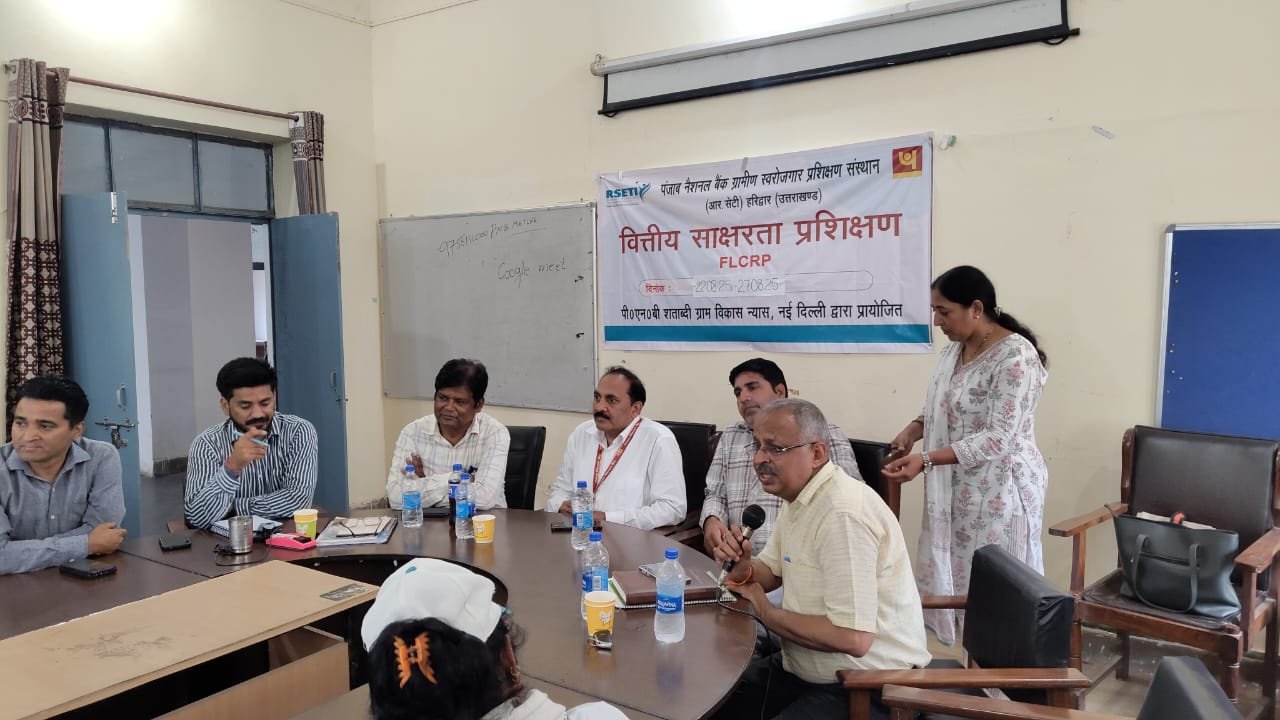हरिद्वार, 27 अगस्त 2025: मुख्य विकास अधिकारी श्रीमती आकांक्षा कोंड के निर्देशों के क्रम में राष्ट्रीय ग्रामीण आजीविका मिशन (NRLM) के अंतर्गत ग्रामीण स्वरोजगार प्रशिक्षण संस्थान (RSETI) द्वारा प्रसार प्रशिक्षण केंद्र (ETC), हरिद्वार में फाइनेंशियल लिटरेसी कम्युनिटी रिसोर्स पर्सन (FLCRP) के लिए छह दिवसीय विशेष प्रशिक्षण कार्यक्रम का सफल आयोजन किया गया। यह प्रशिक्षण 22 अगस्त से प्रारंभ होकर 27 अगस्त 2025 को संपन्न हुआ। इस दौरान जनपद हरिद्वार के सभी विकासखंडों से चयनित 29 महिला प्रतिभागियों ने भागीदारी की।