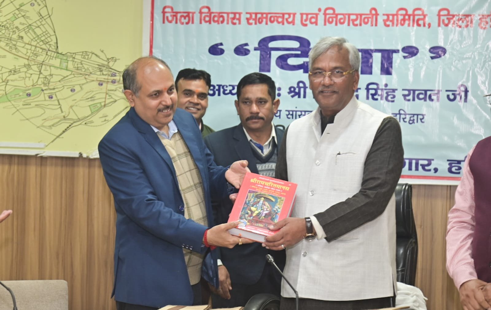 *हरिद्वार । लोक सभा सांसद त्रिवेन्द्र सिंह रावत की अध्यक्षता में मेला नियत्रण कक्ष सीसीआर के सभा कक्ष में जिला विकास समन्व्य एवं निगरानी समिति (दिशा) की बैठक आयोजित की गई जिसमें विभिन्न विभागों के माध्यम से केन्द्र सरकार द्वारा संचालित जल कल्याणकारी योजनाओं की विभागवार समीक्षा की गई तथा पूर्व बैठक में दिए गये निर्देशों में की गई कार्यवाही की विभागवार समीक्षा की गई।