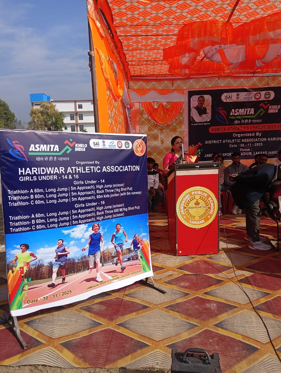 हरिद्वार। अस्मिता एथलीट मीट जमदगनी पब्लिक स्कूल पिपली लक्सर में प्रातः 9:00 बजे से आयोजित की गई। यह प्रतियोगिता एथलेटिक फेडरेशन ऑफ इंडिया के तत्वाधान में मुख्य अतिथि डॉ. मनु शिवपुरी ब्रांड एंबेसडर “बेटी बचाओ बेटी पढ़ाओ” और जेवलिंग थ्रो इंटरनेशनल चैंपियन श्रीमान नीरज चोपड़ा,̊ गोल्ड मेडलिस्ट ओलंपिक गेम्स के कोच श्रीमान नसीम अहमद (कोच) को आमंत्रित किया गया।
