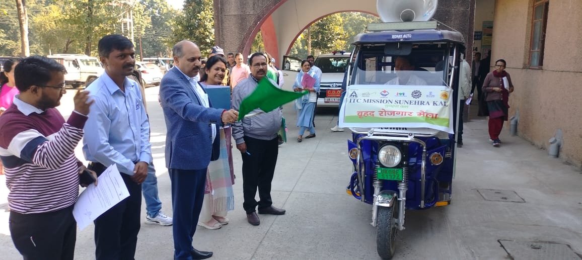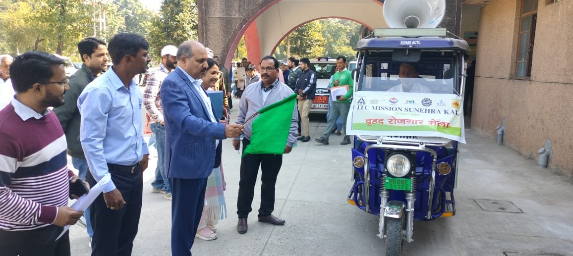 हरिद्वार, मुख्य विकास अधिकारी ललित नारायण मिश्र ने अवगत कराया है कि जनपद के बेरोजगार युवाओं को रोजगार के अवसर उपलब्ध कराने के लिए आईटीसी मिशन सुनहरा कल तथा जिला कौशल विकास एवं सेवायोजन कार्यालय, हरिद्वार के मार्गदर्शन एवं नेतृत्व में दिनांक 21 नवंबर 2025 को दयानंद स्टेडियम गुरुकुल कांगड़ी विवि हरिद्वार में वृहद रोजगार मेले का आयोजन किया जा रहा है,जिसके सफल क्रियान्वयन के लिए प्रचार वाहन को हरी झंडी दिखाकर रवाना किया।