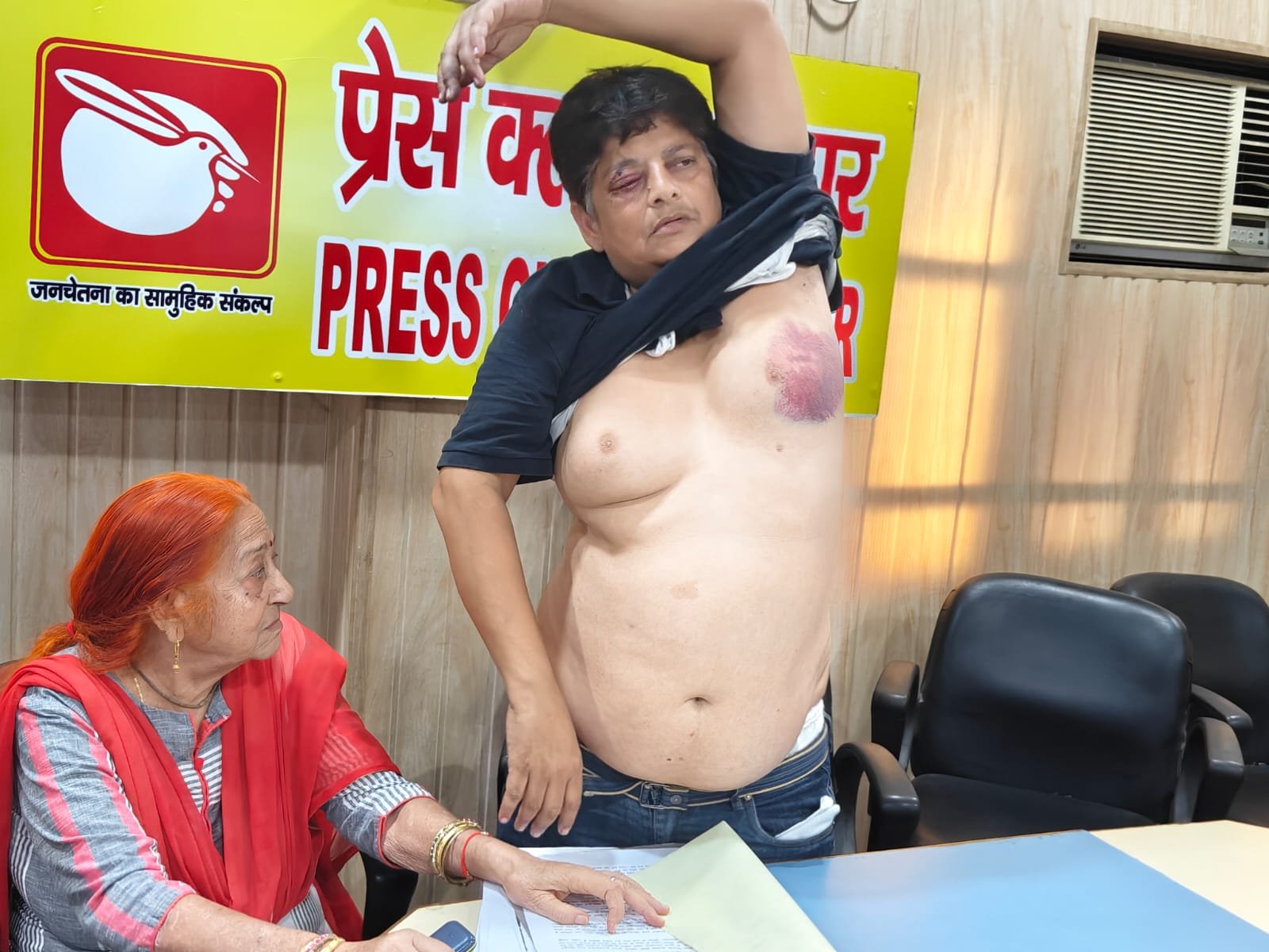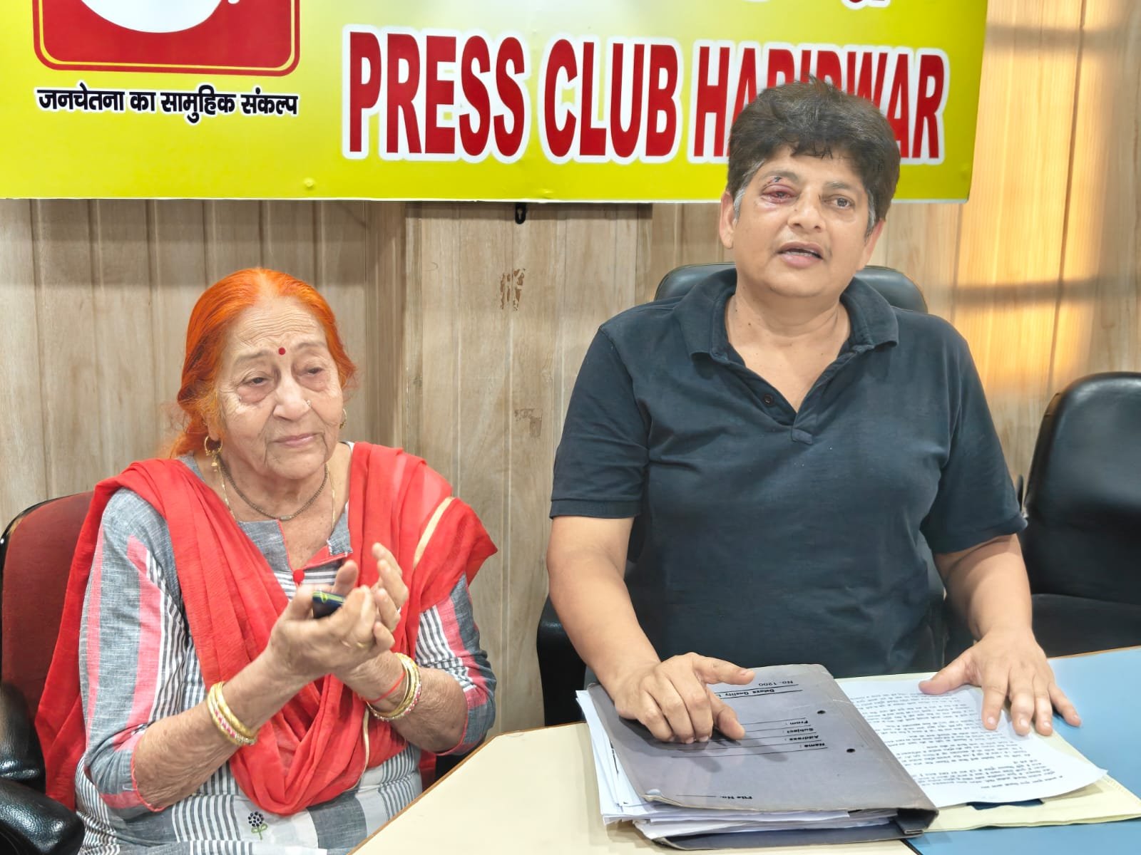 हरिद्वार। खन्ना नगर निवासी व्यवसायी आशीष कुमार गुप्ता ने प्रैस क्लब में पत्रकारवार्ता के दौरान मारपीट करने का आरोप लगाते हुए पुलिस से कार्रवाई की मांग की है। पत्रकारों को जानकारी देते हुए आशीष कुमार गुप्ता ने बताया कि किसी काम से सड़क से अपने पुत्र के साथ जा रहे थें। इस दौरान दो अज्ञात व्यक्तियों ने उन पर हमला कर दिया। आशीष गुप्ता ने बताया कि असामाजिक तत्वों द्वारा उन्हें बुरी तरह से लाठी डंडों से पीटा। जिससे आंख व चेहरे पर काफी चोटे आयी हैं। पुत्र पर भी उनके द्वारा हमला किया गया। आशीष गुप्ता ने कहा कि पूर्व में भी मेरे साथ मारपीट की गयी थी। उन्होंने गंभीर आरोप लगाते हुए कहा कि व्यसायी साझेदार सुमित सचदेवा के इशारे पर मेरे साथ मारपीट की गयी है। सुमित सचदेवा पर मेरे निर्माण किए जाने की धनराशि बकाया है। कई बार इस बात को लेकर मैने पेमेंट करने की बात कही गयी। लेकिन वह मेरे पैसे नहीं लौटा रहा है। सुमित सचदेवा रसुखदार है। धनबल का प्रयोग कर मुझे दबाने का प्रयास कर रहा है। आशीष कुमार गुप्ता ने अपने परिवार की जानमाल व सुरक्षा की गुहार लगाते हुए पुलिस से सख्त कार्रवाई की मांग की है। आशीष गुप्ता ने बताया कि उन्होंने ज्वालापुर पुलिस को तहरीर भी दी है। इसके पूर्व एसएसपी कार्यालय में भी प्रार्थना देकर कार्रवाई की मांग की गयी थी। पत्रकार वार्ता के दौरान आशीष कुमार गुप्ता की माता संतोष भी मौजूद रही।