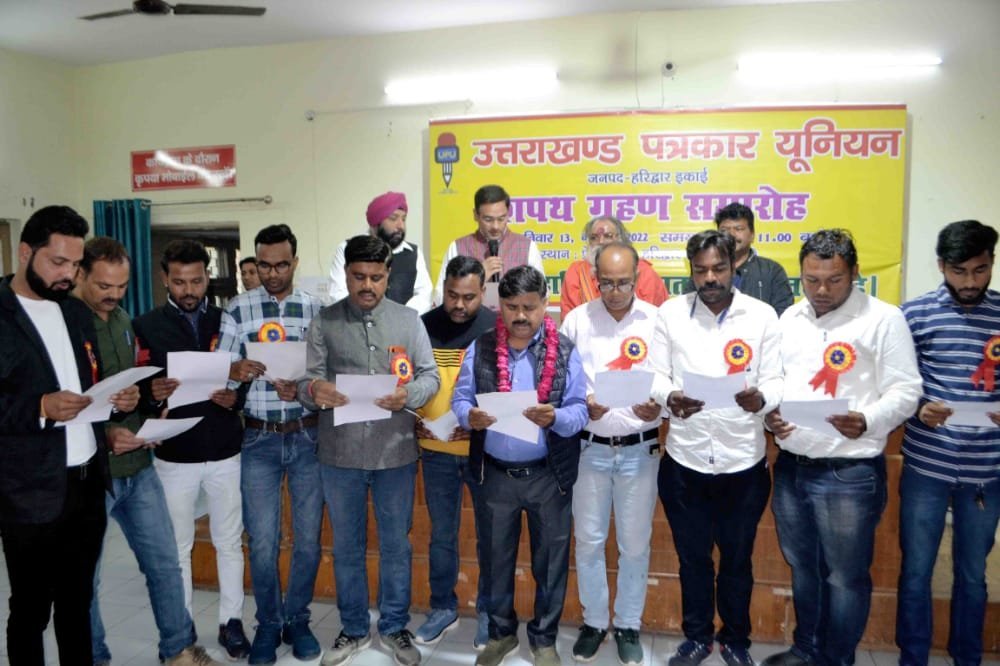 कार्यक्रम को संबोधित करते हुए कैबिनेट मंत्री सौरभ बहुगुणा ने उत्तराखण्ड पत्रकार यूनियन के नवनियुक्त जिला अध्यक्ष ठाकुर रविन्द्र सिंह, महासचिव दीपक प्रजापति, कोषाध्यक्ष आशीष धीमान सहित सभी पदाधिकारियों व सदस्यों को शुभकामनाएं देते हुए कहा कि पत्रकारों को तथ्यों का मूल्यांकन कर निष्पक्षता से खबरों को प्रकाशित व प्रसारित करना चाहिए। उन्होंने कहा कि पत्रकार सरकार व समाज के बीच महत्वपूर्ण कड़ी के रूप में कार्य करते हैं। सरकार पत्रकारों की समस्याओं के प्रति गंभीर है और समाधान के लिए निरंतर प्रयास किए जा रहे हैं। विधायक रवि बहादुर ने कहा कि जनहित के मुद्दों को प्रमुखता से उठाने में हरिद्वार के पत्रकारों की अहम भूमिका है। उन्होंने नवनियुक्त पदाधिकारियों को बधाई देते हुए कहा कि वे पत्रकारों के सहयोग के लिए सदैव तत्पर हैं। महामण्डलेश्वर स्वामी ललितानंद गिरी एवं महंत रविपुरी महाराज ने कहा कि पत्रकार समाज को आईना दिखाने का काम करते हैं। निर्भीकता से अपने काम को अंजाम दें। सत्ता एवं विपक्ष का आंकलन कर आमजनमास को खबरें पहुंचाने में पत्रकार महत्वपूर्ण निभाते हैं। उत्तराखंड पत्रकार यूनियन के प्रदेश अध्यक्ष भूपेंद्र सिंह कंडारी व प्रदेश महामंत्री हरीश जोशी ने कहा कि नवनियुक्त पदाधिकारियों को बधाई देते हुए कहा कि उत्तराखंड पत्रकार यूनियन पत्रकार हितों के लिए निरंतर प्रयास कर रही है। उन्होंने कहा कि पत्रकारिता एक टीम वर्क है।