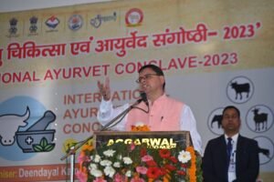 कार्यक्रम को सम्बोधित करते हुये मुख्यमंत्री श्री पुष्कर सिंह धामी ने देश के कोने कोने से आये हुए सभी महानुभावों आयुर्वेदाचार्यों का, महर्षि चरक की कर्मभूमि उत्तराखंड में स्वागत और अभिनंदन करते हुये कहा कि भारत वैदिक काल से ही आयुर्वेद द्वारा पशुधन स्वास्थ्य के क्षेत्र में पारंपरिक ज्ञान को लागू करने वाला प्रमुख देश रहा है। उन्होंने कहा कि ’’सर्वे संतु निरामया’’ का संदेश देने वाला पंचम वेद अर्थात आयुर्वेद हमारी समृद्ध प्राचीन विरासत का अभिन्न अंग है। उन्होंने प्रधानमंत्री श्री नरेंद्र मोदी का जिक्र करते हुये कहा कि प्रधानमंत्री ने अपने ’’पंचप्राण’’ विकास रणनीति में देश के विकास लक्ष्य को प्राप्त करने के लिए अपनी इसी समृद्ध प्राचीन विरासत और पारंपरिक ज्ञान को सहेजने पर जोर दिया है।