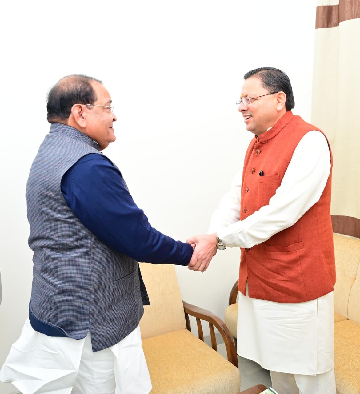 मुख्यमंत्री श्री पुष्कर सिंह धामी ने मंगलवार को गैरसैंण (भराड़ीसैंण) में नेता प्रतिपक्ष श्री यशपाल आर्य से शिष्टाचार भेंट की।