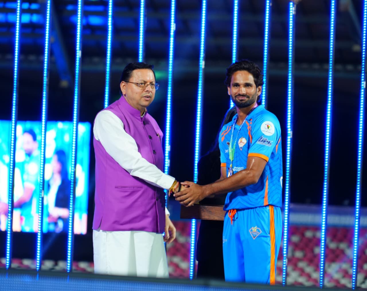 देहरादून| मुख्यमंत्री श्री पुष्कर सिंह धामी ने क्रिकेट एसोसिएशन ऑफ उत्तराखंड की द्वारा राजीव गाँधी इंटरनेशनल स्टेडियम रायपुर देहरादून में आयोजित उत्तराखंड प्रीमियर लीग 2025 के समापन समारोह में प्रतिभाग किया|