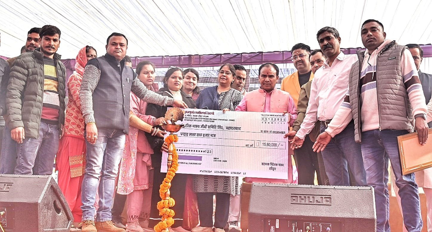 इस अवसर पर विभिन्न योजनों के पात्र व्यक्तियों को चैक वितरण किए गए जिसमे अलंकारिक मत्स्य जीवी समिति को 15.60 लाख,गणेश आजीविका स्वयं सहायता समूह को 6 लाख तथा सहकारिता मत्स्य जीवी समिति मानिकपुर आदमपुर ब्लॉक भगवानपुर को उत्कृष्ट मत्स्य प्रदर्शन के लिए प्रमाण पत्र दिया गया तथा दिन दयाल उपाध्याय सहकारिता किशन योजना के अंतर्गत 10 लोगों को ऋण के चैक वितरित किए गये।