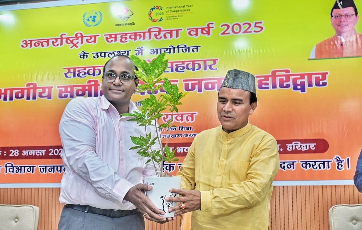 *हरिद्वार । अंतरराष्ट्रीय सहकारिता वर्ष 2025 के उपलक्ष्य में सहकारिता में सहकार की जिलास्तरीय समीक्षा बैठक सहकारिता मंत्री डॉ धन सिंह रावत की अध्यक्षता में विकास भवन ऑडिटोरियम में समीक्षा बैठक आयोजित की गई। इस अवसर पर मा. सहकारिता मंत्री, रानीपुर विधायक आदेश चौहान,सचिव सहकारिता डॉ वी वी आर सी पुरुषोत्तम ,जिलाधिकारी मयूर दीक्षित, मुख्य विकास अधिकारी आकांक्षा कोण्डे एवं भाजपा जिलाध्यक्ष आशुतोष शर्मा द्वारा दीप प्रज्वलित कर कार्यक्रम का शुभारंभ किया गया ।