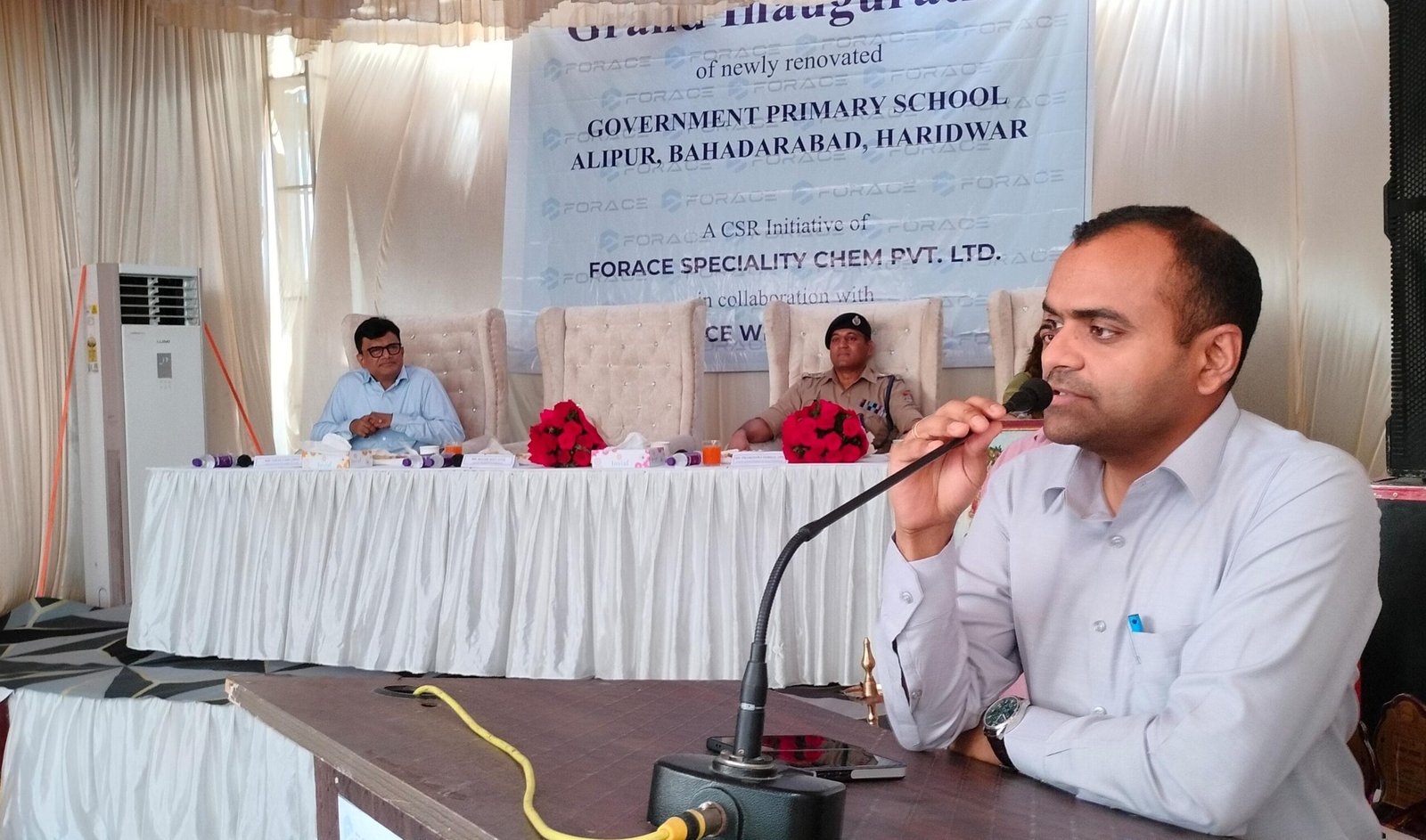 हरिद्वार । फोरेस केम.प्रा.लि. द्वारा राजकीय प्राथमिक विद्यालय तथा आंगनबाड़ी केन्द्र अलीपुर में सीएसआर मद से किये गये कार्यों का जिलाधिकारी मयूर दीक्षित, वरिष्ठ पुलिस अधीक्षक प्रमेन्द्र सिंह डोबाल, कम्पनी के एमडी विकास गर्ग, डायरेक्टर सोनिया गर्ग द्वारा संयुक्त रूप से लोकार्पण किया।