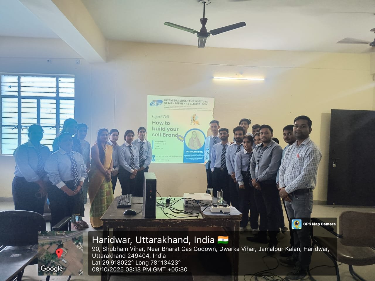 हरिद्वार। स्वामी दर्शनानन्द इंस्टिट्यूट आॅफ मैंनेजमंेट एण्ड टैक्नोलाॅजी संस्थान में एक्सपर्ट टाॅक आयोजित की गयी, जिसमें एक्सपर्ट के तौर पर डाॅ0 मौसमी गोयल (एसोसिएट डीन, क्वांटम स्कूल आॅफ ग्रेजुएट स्टडीज एण्ड एसोसिएट प्रोफेसर एण्ड एच0ओ0डी0, डिपार्टमेंट आॅफ बिजनेस एडमिनिस्टेªशन) उपस्थित रहीं, जिनका स्वागत संस्थान की निदेशक डाॅ0 जयलक्ष्मी, दिव्या राजपूत एवं अन्य संस्थान के सदस्यों ने बुके एवं मोमेंटो देकर किया। एक्सपर्ट टाॅक का विषय हाउ टू बिल्ड योर सैल्फ ब्रांड रहा, जिसमें कि विशेषज्ञ ने छात्र-छात्राओं के साथ अपने विचार साझा किये और बताया कि कैसे वह अपने व्यक्तित्व को और बेहतर बना सकते है और अपने आप को सैल्फ ब्रांड बना सकते है। इस अवसर पर डीन एकेडमिक्स अंजुम सिद्दकी, रजिस्ट्रार अनुराग गुप्ता, पंकज चैधरी, विकास अग्रवाल, धरणीधर वाग्ले, वर्षा रानी, सुधांशु जगता, त्रिशु अवस्थी, कशिश धीमान, ज्योति राजपूत, आशीष कुमार, उमेश, देवेन्द्र रावत, दिलखुश उपस्थित रहें।
