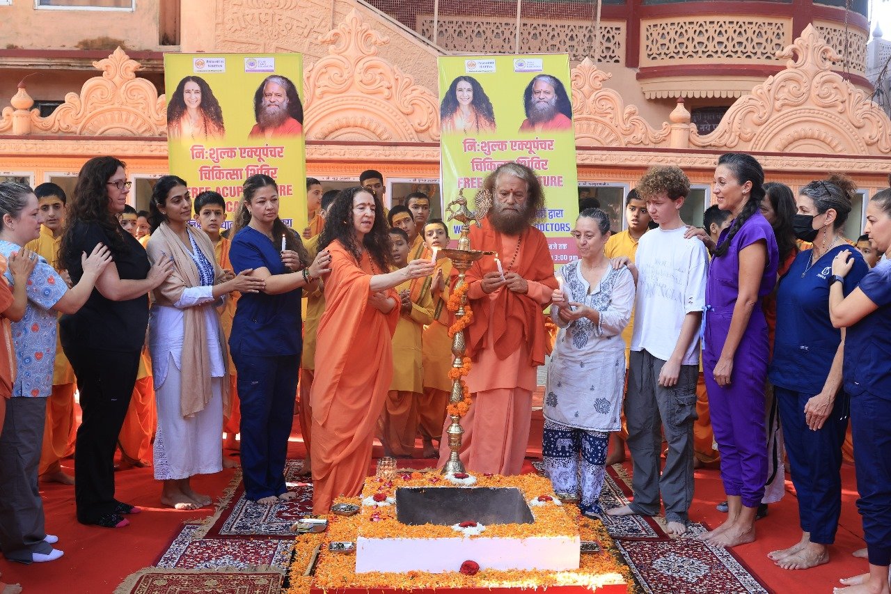 परमार्थ निकेतन के अध्यक्ष स्वामी चिदानन्द सरस्वती जी, डा साध्वी भगवती सरस्वती जी और अमेरिका से आये एक्यूपंक्चर चिकित्सा विशेषज्ञों की टीम ने दीप प्रज्वलित कर किया शुभारम्भ