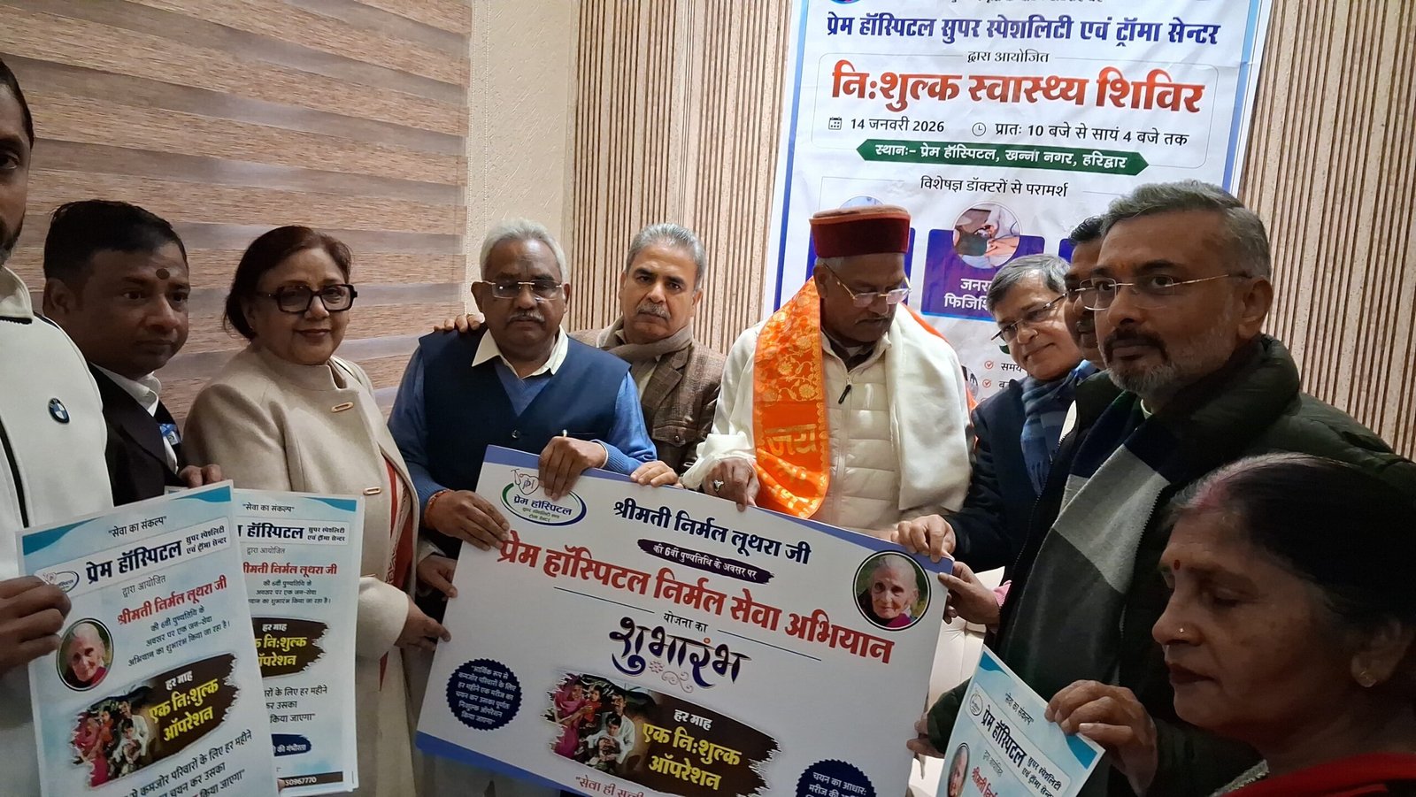 हरिद्वार। मकर संक्रांति के अवसर पर प्रेम हॉस्पिटल सुपर स्पेशलिटी एंड ट्रॉमा सेंटर में निःशुल्क स्वास्थ्य शिविर का आयोजन किया गया। सुप्रीम कोर्ट के वरिष्ठ अधिवक्ता सिदार्थ लूथरा की माता निर्मल देवी लूथरा की पुण्य स्मृति में आयोजित स्वास्थ्य शिविर का शुभारंभ मुख्य अतिथि सांसद त्रिवेंद्र सिंह रावत, विधायक मदन कौशिक, विधायक आदेश चौहान, सुप्रीम कोर्ट के वरिष्ठ अधिवक्ता सिदार्थ लूथरा, भाजपा जिलाध्यक्ष आशुतोष शर्मा, पूर्व राज्यमंत्री विमल कुमार, आईवीएफ विशेषज्ञ डा.संध्या शर्मा, हॉस्पिटल प्रबंधक हिमांशु पालीवाल ने संयुक्त रूप से किया। इस अवसर पर अस्पताल ने प्रत्येक माह एक निःशुल्क सर्जरी करने का संकल्प लिया।