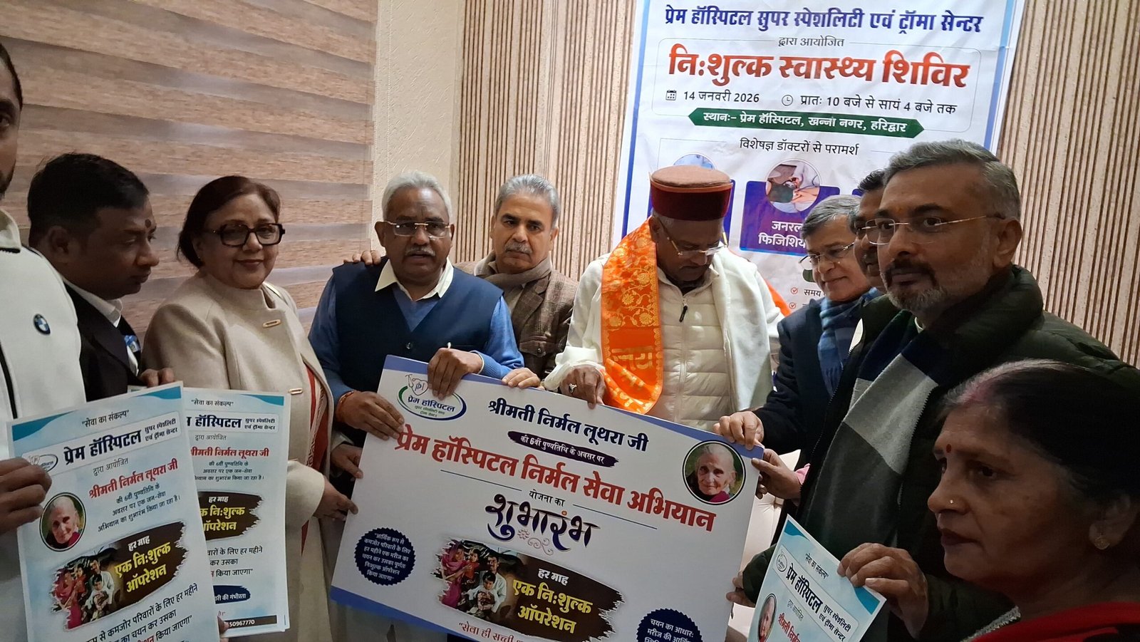 हरिद्वार। मकर संक्रांति के अवसर पर प्रेम हॉस्पिटल सुपर स्पेशलिटी एंड ट्रॉमा सेंटर में निःशुल्क स्वास्थ्य शिविर का आयोजन किया गया। सुप्रीम कोर्ट के वरिष्ठ अधिवक्ता सिदार्थ लूथरा की माता निर्मल देवी लूथरा की पुण्य स्मृति में आयोजित स्वास्थ्य शिविर का शुभारंभ मुख्य अतिथि सांसद त्रिवेंद्र सिंह रावत, विधायक मदन कौशिक, विधायक आदेश चौहान, सुप्रीम कोर्ट के वरिष्ठ अधिवक्ता सिदार्थ लूथरा, भाजपा जिलाध्यक्ष आशुतोष शर्मा, पूर्व राज्यमंत्री विमल कुमार, आईवीएफ विशेषज्ञ डा.संध्या शर्मा, हॉस्पिटल प्रबंधक हिमांशु पालीवाल ने संयुक्त रूप से किया। इस अवसर पर अस्पताल ने प्रत्येक माह एक निःशुल्क सर्जरी करने का संकल्प लिया।