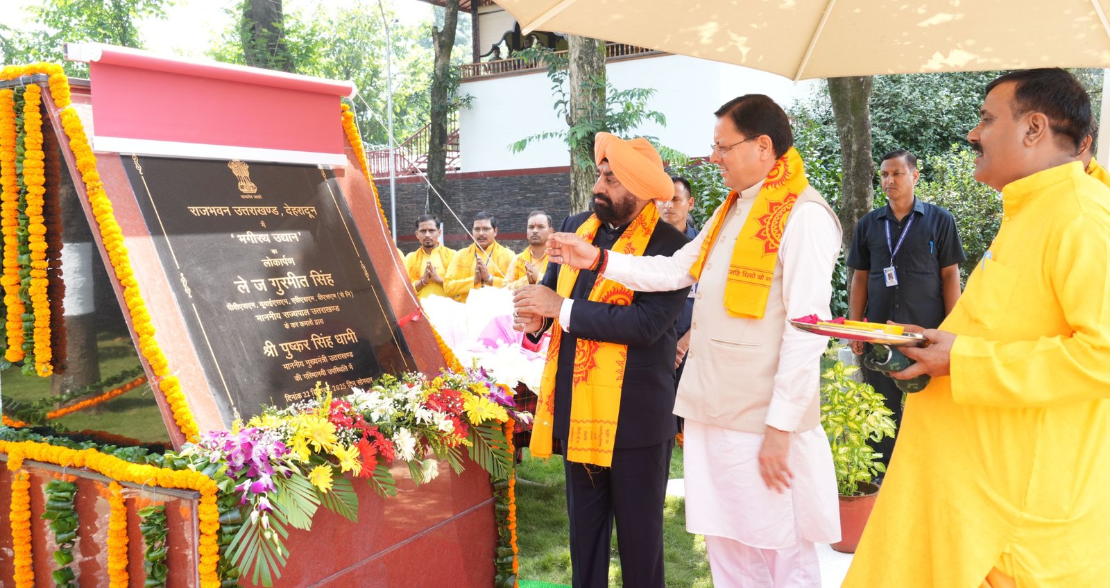 देहरादून। राज्यपाल लेफ्टिनेंट जनरल गुरमीत सिंह (से नि) और मुख्यमंत्री श्री पुष्कर सिंह धामी ने सोमवार को राजभवन परिसर में ‘‘भगीरथ उद्यान’’ का उद्घाटन किया। इस अवसर पर उन्होंने उद्यान में स्थापित महान राजा भगीरथ की भव्य प्रतिमा का अनावरण भी किया।