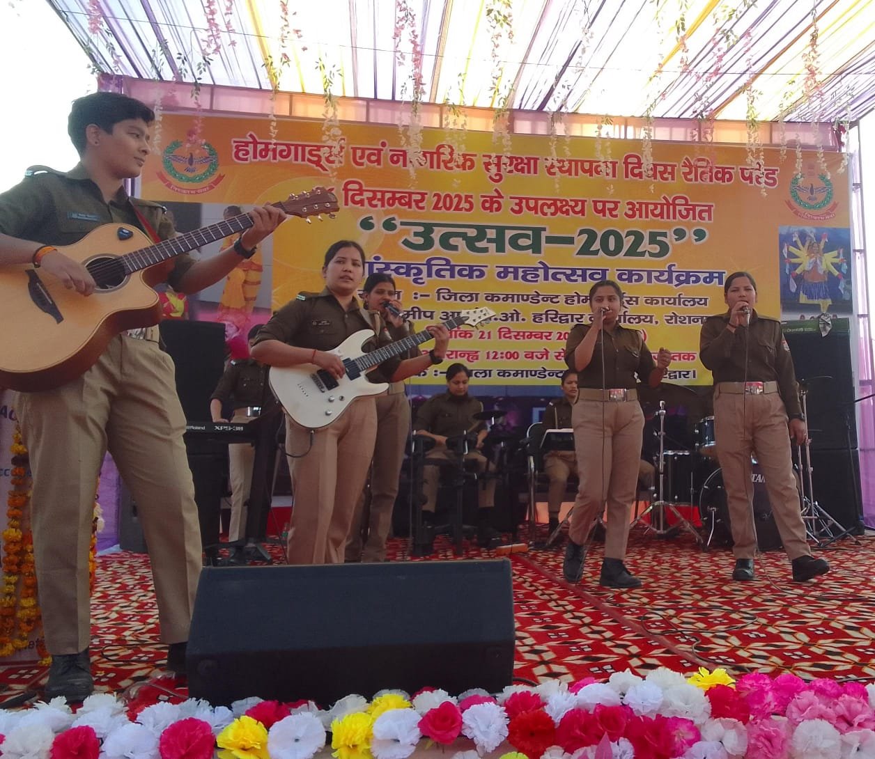 हरिद्वार। रोशनाबाद स्थित जिला कमांडेंट होमगार्ड कार्यालय में रविवार को होमगार्ड्स एवं नागरिक सुरक्षा स्थापना दिवस धूमधाम से मनाया गया। रैतिक परेड और भव्य उत्सव कार्यक्रम की शुरुआत गणेश वंदना के साथ हुई। मुख्य अतिथि राज्य मंत्री श्यामवीर सैनी ने दीप प्रज्वलित कर कार्यक्रम का शुभारंभ किया।महिला एवं पुरुष होमगार्ड जवानों ने देशभक्ति से ओतप्रोत नृत्य और गीतों की शानदार प्रस्तुतियां दीं, जिसने समारोह में उत्साह और देशप्रेम का रंग घोल दिया। होमगार्ड जुगुणियां बैंड ने अपने मनमोहक और सधे हुए प्रदर्शन से दर्शकों का दिल जीत लिया। मंडलीय कमांडेंट गौतम कुमार ने मुख्य अतिथि सहित वरिष्ठ अधिकारियों और गणमान्य अतिथियों का पुष्पगुच्छ एवं स्मृति चिन्ह भेंट कर स्वागत किया। इस दौरान संगठन की उपलब्धियों और सेवाभाव पर भी प्रकाश डाला गया।