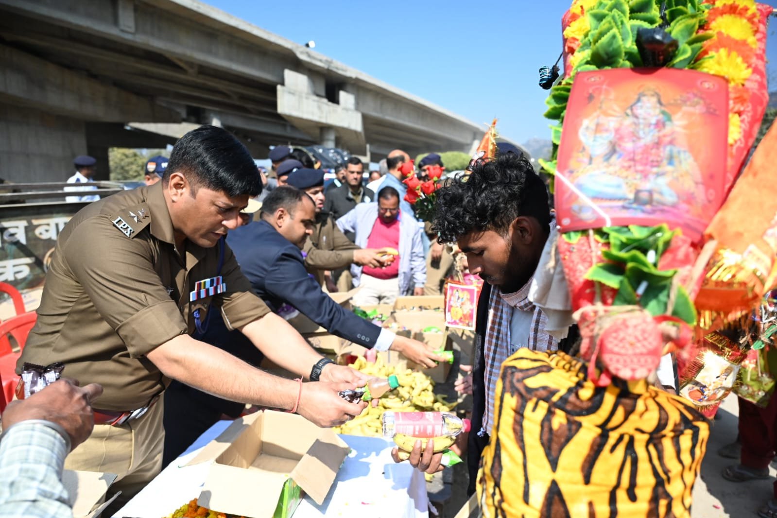 जिलाधिकारी मयूर दीक्षित एवं वरिष्ठ पुलिस अधीक्षक प्रमेंद्र सिंह डोभाल ने कांवड़ यात्रियों को फल एवं जलपान वितरित कर अतिथि देवो भव की परंपरा से किया स्वागत