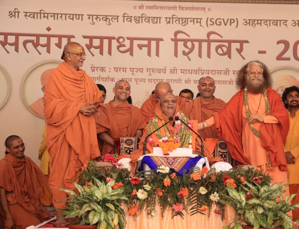 -श्री स्वामिनारायण गुरूकुल विश्वविद्यालय, अहमदाबाद द्वारा आयोजित सत्संग साधना शिविर में पूज्य माधवप्रिय स्वामी जी महाराज, पूज्य बाल स्वामी जी महाराज और पूज्य संतों का मार्गदर्शन व आशीर्वाद