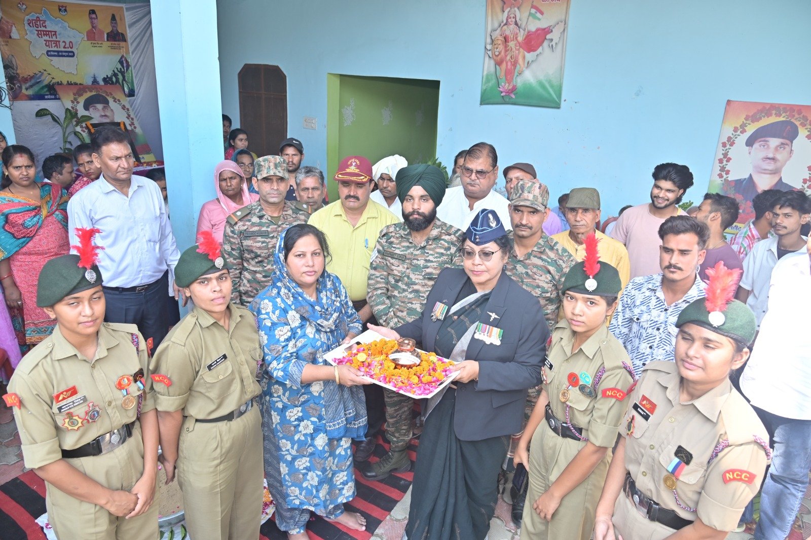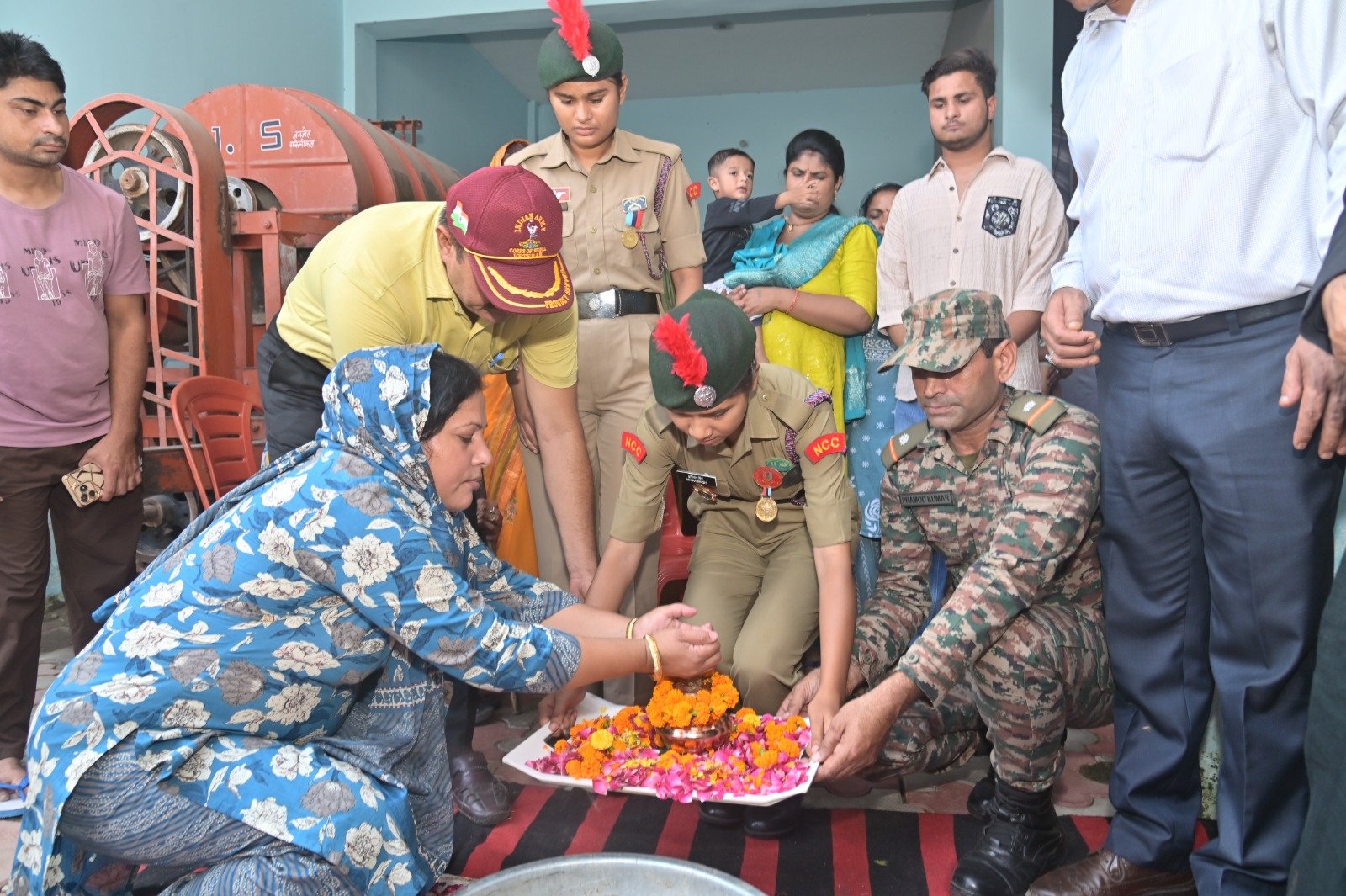 दिनांक 25 सितम्बर 2025 से 04 अक्टूबर 2025 तक किया जा रहा है। जनपद हरिद्वार के 02 शहीदों के घर-आंगन की मिट्टी संग्रह का कार्यक्रम दिनांक 03 अक्टूबर 2025 को जिला सैनिक कल्याण एव पुनर्वास कार्यालय, ज्वालापुर तहसील, हरिद्वार से प्रारम्भ किया गया। यात्रा शहीद हव० सोनित कुमार सैनी, जो दिनांक 11 अक्टूबर 2021 को अरुणांचल प्रदेश के ढुकुमपानी क्षेत्र में शहीद हुए थे, के ग्राम धनौरा, ब्लाक-रूड़की में पुहंची। समस्त ग्रामवासियों द्वारा शहीद सैनिक को श्रृद्धांजलि के पश्चात शहीद सैनिक की पत्नी श्रीमती गीता सैनी द्वारा घर-आंगन की मिटट्टी का ताम्र कलश जिला सैनिक कल्याण अधिकारी को हस्तगत किया गया।