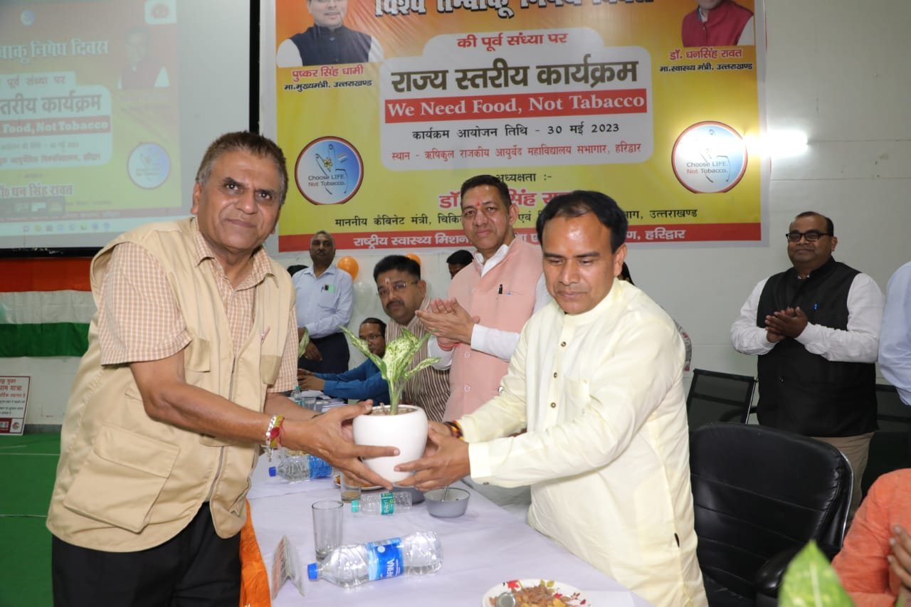 हरिद्वार। विश्व स्वास्थ्य निषेध दिवस के उपलक्ष्य पर ऋषिकुल राजकीय आयुर्वेद महाविद्यालय के सभागार में इंडियन रेडक्रॉस सचिव ऋषिकुल राजकीय आयुर्वेद महाविद्यालय के रचना शरीर विभागाध्यक्ष प्रोफेसर (डॉ.) नरेश चौधरी को उत्तराखंड प्रदेश के स्वास्थ्य मंत्री डॉ. धन सिंह रावत ने अपने मूल दायित्व के अतिरिक्त अंतरराष्ट्रीय, राष्ट्रीय एवं राजकीय जागरूकता अभियानों यथा कोविड-19 जैसी वैश्विक महामारी विश्व तंबाकू निषेध दिवस, विश्व स्वास्थ्य दिवस, नशामुक्ति ,पोलियो उन्मूलन, कुंभ मेला ,अर्ध कुंभ मेला, कांवड़ मेला स्नान पर्वो एवं चिकित्सा शिविरो में स्वास्थ्य विभाग के साथ उत्कृष्ट सहयोग करने के लिए विशेष रूप से सम्मानित किया। डॉ. धन सिंह रावत ने कहा कि डॉ नरेश चौधरी को जो चुनौती पूर्ण दायित्व दिए जाते हैं, उन सभी को डॉ. नरेश चौधरी द्वारा संपूर्ण कर्मठता एवं समर्पित भावना से पूर्ण किया जाता है।