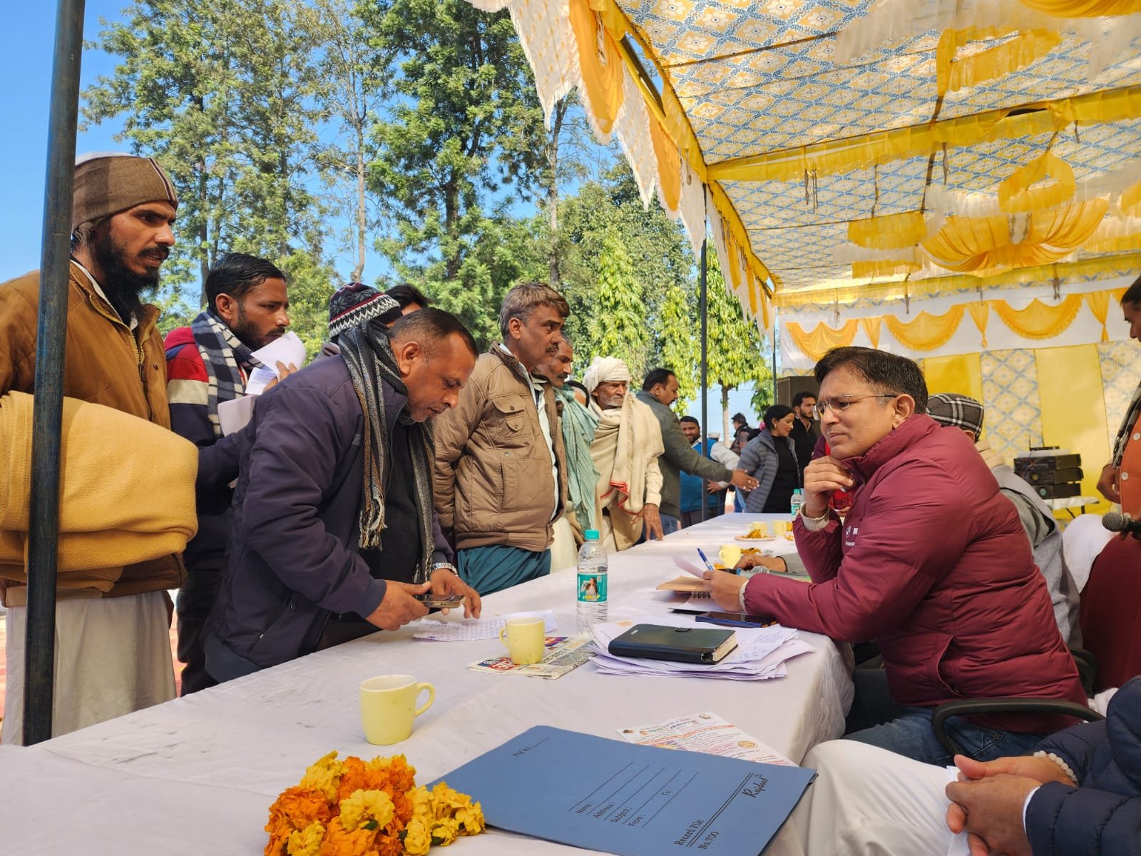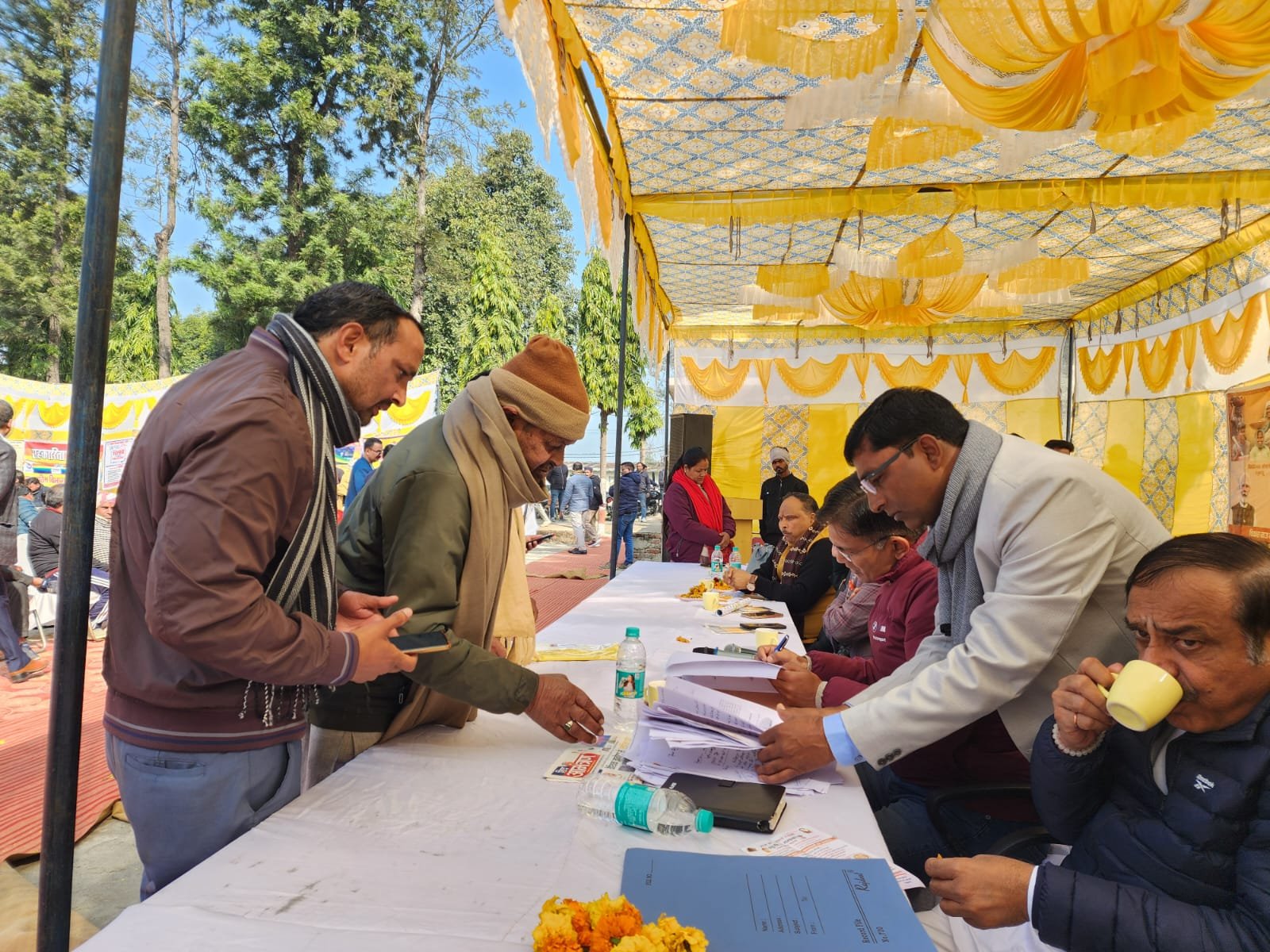 शिविर को संबोधित करते हुए जिला पंचायत अध्यक्ष किरण चौधरी ने कहा कि मुख्यमंत्री पुष्कर सिंह धामी नेतृत्व एवं निर्देशन में प्रदेश भर। की सभी न्याय पंचायतों में जन जन की सरकार जन जन के द्वार बहुउद्देशीय शिविर आयोजित किए जा रहे है,जिसमें ग्रामीणों की समस्याओं का मौके पर निराकरण करते हुए संचालित योजनाओं से पात्र व्यक्तियों को लाभान्वित किया जा रहा है।जिसका लाभ ग्रामीणों को उन्हीं के द्वार पर उपलब्ध हो रहा है।