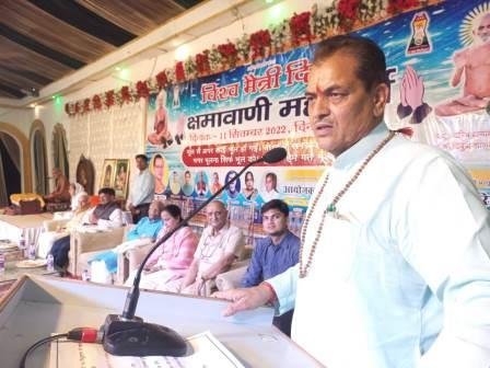 इस मौके पर कैबिनेट मंत्री डॉ अग्रवाल जी ने कहा कि विश्व मैत्री दिवस पर आयोजित क्षमावाणी पर्व आपस में मित्रतापूर्ण व्यवहार को अपनाने की सीख देता है। यह पर्व हमें सीखाता है कि वाणी में ही नहीं प्राणी में भी क्षमा आनी चाहिए। सभी प्राणियों के प्रति मित्रता का भाव आना ही इस पर्व का प्रयोजन है। संसार में रहने वाले समस्त चराचर प्राणियों के प्रति क्षमा का भाव धारण करना और उन्हें अपनत्व आत्मीयता प्रदान करना अपने हृदय शुद्धि की पराकाष्ठा है।