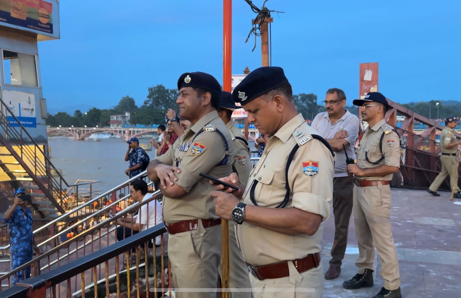 कावड़ यात्रा 2025 अपने अंतिम दौर की ओर बढ़ रही है। आज भारी भीड़ के बीच एसएसपी प्रमेन्द्र सिंह डोभाल मातहत संग शहर में मेला क्षेत्र का भ्रमण करने के पश्चात सुरक्षा व्यवस्था का जायजा लेने हर की पैड़ी पहुंचे। इस दौरान एसएसपी ने संध्या आरती में सम्मिलित होकर मातहत पुलिस ऑफिसर्स को सुरक्षा व्यवस्था एवं श्रद्धालुओं कांवड़ियों को उनके गंतव्य रवाना करने के लिए आवश्यक दिशा निर्देश दिए। कहा कि प्रत्येक शिव भक्त हर की पैड़ी अवश्य आता है जिससे अपनी सुरक्षा व्यवस्था में किसी प्रकार की लापरवाही नहीं करनी हैl अभी तक सभी लोगों ने बहुत अच्छी ड्यूटी की गई इसके लिए सभी बधाई के पात्र हैं आगे भी सभी लोग अच्छा काम करेंगे यह मुझे पूरी अपनी टीम पर उम्मीद है