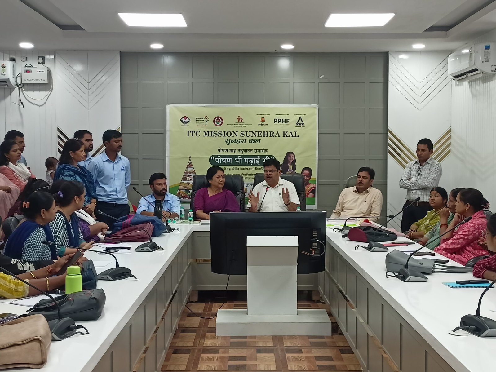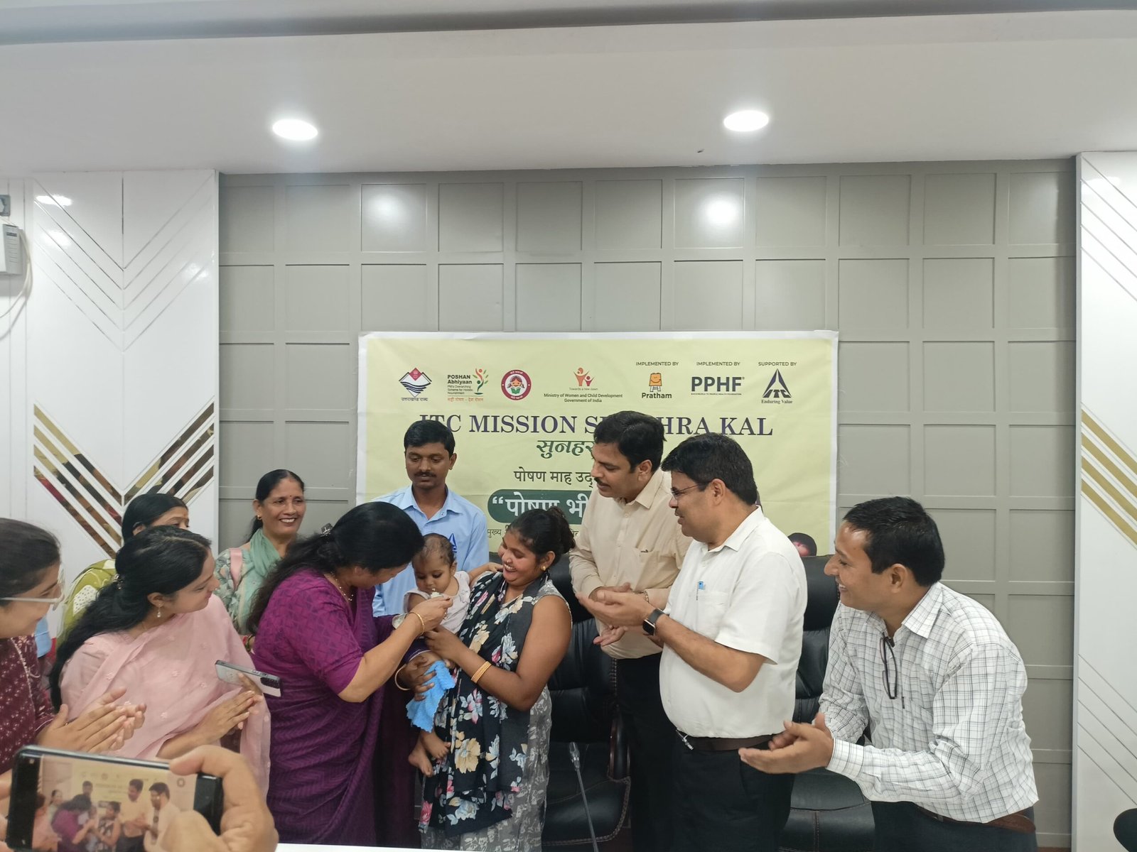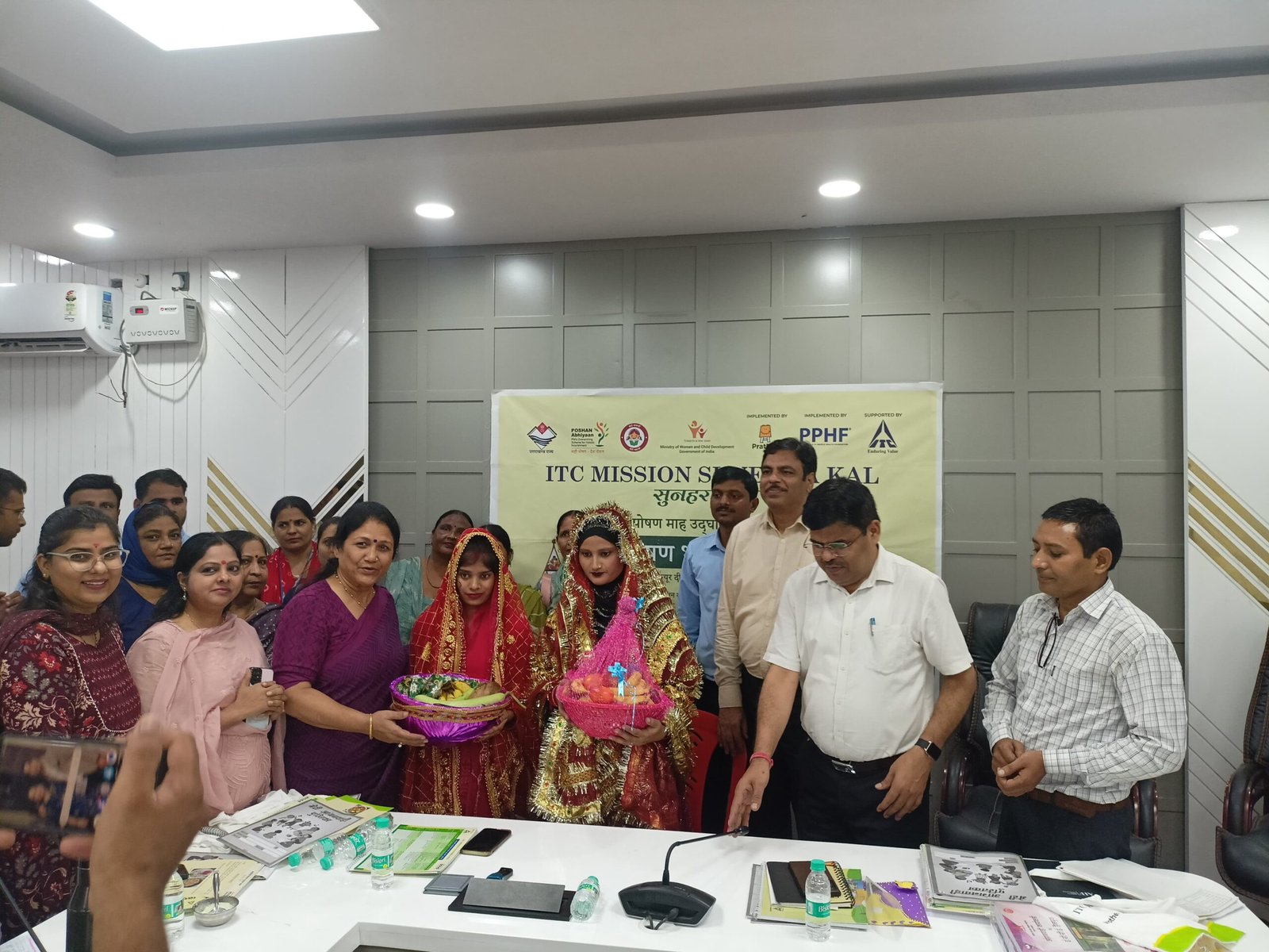 इस प्रोग्राम के तहत सभी अतिथियों का आईटीसी अधिकारी श्री पामीश जी द्वारा तुलसी का पौधा देकर सम्मानित किया और प्रोग्राम को आगे बढ़ाया । पीपुल्स टू पीपल हेल्थ फाउंडेशन की तरफ से पोषण और ग्रोथ मॉनिटरिंग के लिए सभी आंगनवाड़ियों कार्यकर्ताओं की ट्रैनिंग कराई गई और पोषण के साथ साथ पढ़ाई के महत्व पर भी जोर दिया गया । सभी मुख्य अतिथियों ने पोषण और पढ़ाई पर आंगनवाड़ी कार्यकर्ताओं के लिए अपने अपने संदेश दिए और आंगनवाड़ी कार्यकर्ताओं के लिए हस्त पुस्तिका आदि पुस्तकों का अनावरण भी किया गया। इस कार्यक्रम में मुख्य अतिथियों द्वारा गर्भवती महिलाओं की गोद भराई, जो बच्चे 6 माह से ऊपर हो गए है उनके लिए अनप राशन और महिलाओं के लिए लक्ष्मी किट आदि रस्मों को विधिवत् पूर्ण किया गया