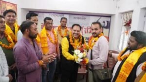 रुड़की। भारत रक्षा मंच रुड़की इकाई की ओर से रुड़की प्रेस क्लब के नव-निर्वाचित पदाधिकारियों को पुष्पगुच्छ देकर तथा हार पहनाकर सम्मानित किया गया।     इस अवसर पर उपाध्यक्ष पूजा नंदा ने सभी नव-निर्वाचित पदाधिकारियों को शुभकामनाएं देते हुए कहा कि आज के समय में मीडिया जोकि समाज का चौथा स्तंभ है, समाज में होने वाली सभी राजनीतिक और सामाजिक घटनाओं को निष्पक्ष रुप से आम नागरिकों के सामने समाचार के रुप में लाता है, जिसे पढ़कर नागरिकों को वर्तमान में होने वाली घटनाओं के बारे में पता चलता है। वास्तव में आज के युग में मीडिया एक महत्वपूर्ण भूमिका निभाता है। इस अवसर पर प्रांत संगठन मंत्री आशीष बाजपेई ने सभी नव-निर्वाचित पदाधिकारियों को शुभकामनाएं देते हुए कहा कि उन्हें निष्पक्ष रुप से पत्रकारिता करते हुए समाज में होने वाली घटनाओं को आम नागरिकों और प्रशासन के समक्ष लाना है। इस अवसर पर प्रेस क्लब के नव-निर्वाचित अध्यक्ष दीपक शर्मा ने भारत रक्षा मंच के सभी पदाधिकारियों का धन्यवाद दिया और कहा कि समाज हित हेतु प्रत्येक कार्य में उनकी टीम द्वारा निष्पक्ष रुप से पत्रकारिता की जाएगी। इस अवसर पर प्रेस क्लब के पदाधिकारियों ने भारत रक्षा मंच के पदाधिकारियों को सुंदर कार्यक्रम के लिए धन्यवाद दिया। सम्मानित करने वालों में भारत रक्षा मंच प्रांत संगठन मंत्री आशीष बाजपेई, प्रांत उपाध्यक्ष पंकज नंदा, प्रांत उपाध्यक्ष महिला मंच पूजा नंदा, नगर संगठन मंत्री कन्हैया, नगर उपाध्यक्ष अमित सोनकर, नगर उपाध्यक्ष समीर गांधी के अलावा अध्यक्ष दीपक शर्मा, उपाध्यक्ष बबलू सैनी, महासचिव अनिल सैनी, सचिव तोषेन्द्र पाल, कोषाध्यक्ष योगराज पाल, निदेशक मुनीश शर्मा व नितिन कुमार, दीपक अरोड़ा, सुभाष सक्सेना, राहुल सक्सेना, अनूप सैनी, ब्रह्मानंद चौधरी, अश्वनी उपाध्याय, गौरव वत्स, मिक्की जैदी आदि अनेक पत्रकारगण मौजूद रहे।