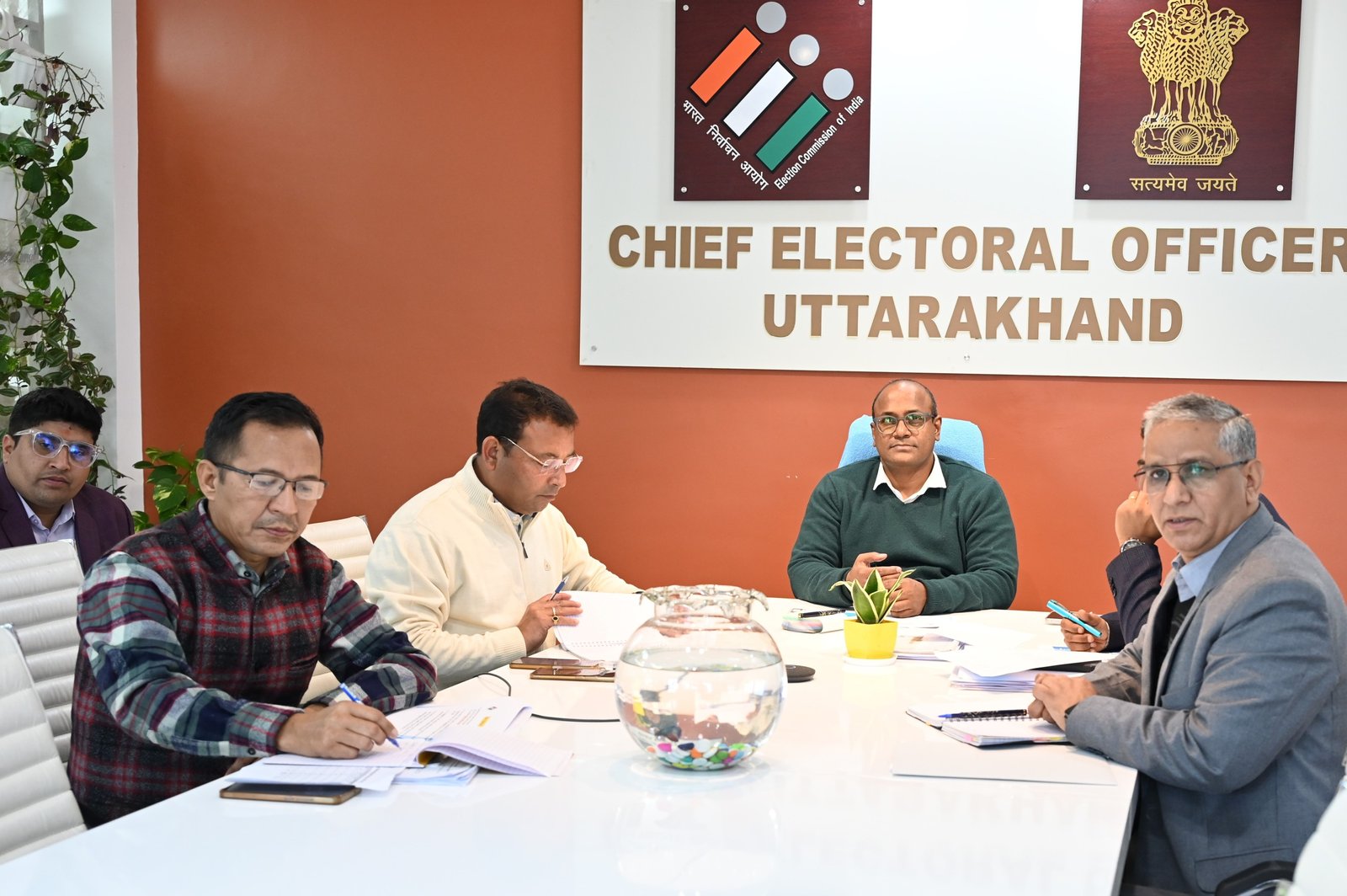बैठक में अपर मुख्य निर्वाचन अधिकारी डॉ. विजय कुमार जोगदंडे,संयुक्त मुख्य निर्वाचन अधिकारी प्रकाश चंद्रा,उप मुख्य निर्वाचन अधिकारी किशन सिंह नेगी, सहायक मुख्य निर्वाचन अधिकारी मस्तू दास सहित सभी जनपदों के जिलाधिकारी वर्चुअल रुप से शामिल रहे।