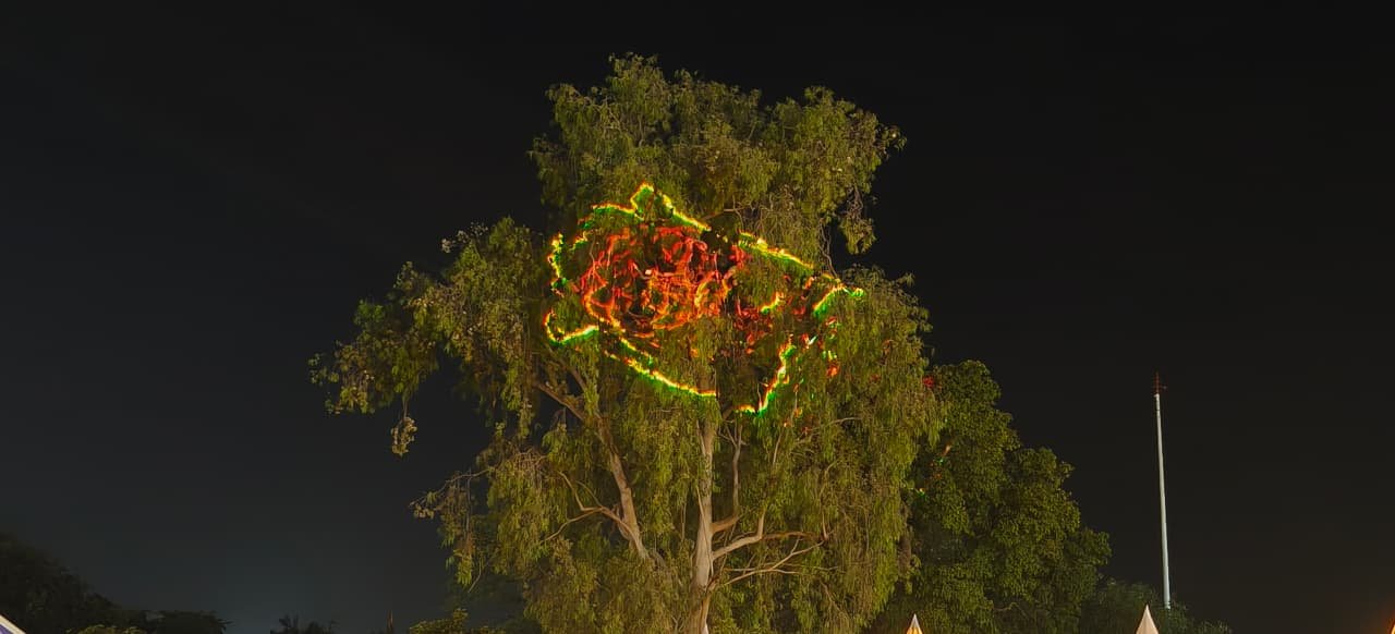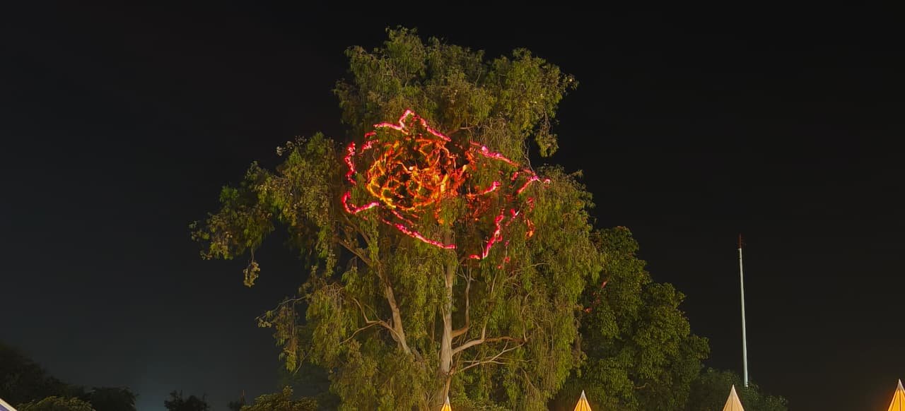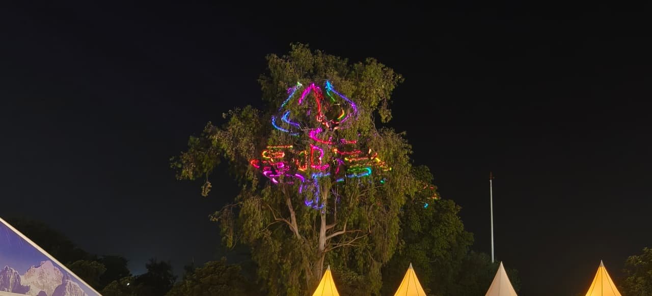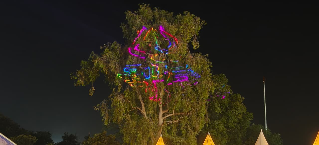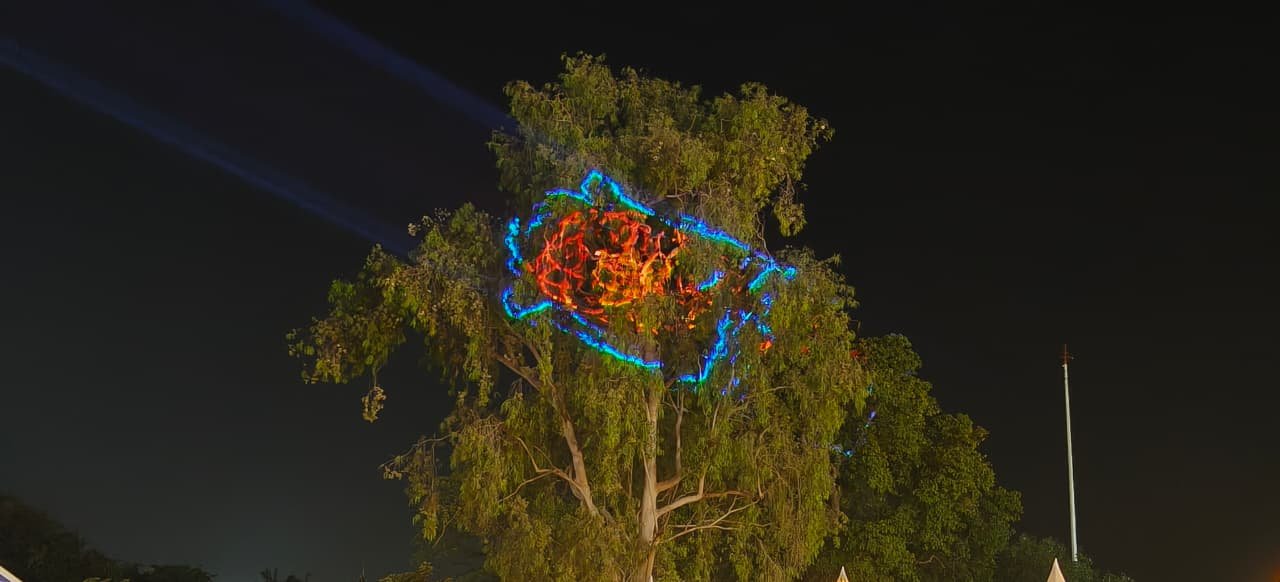 देवभूमि रजत उत्सव में लेज़र शो के माध्यम से पेड़ पर प्रदर्शित होती विभिन्न आकृतियां