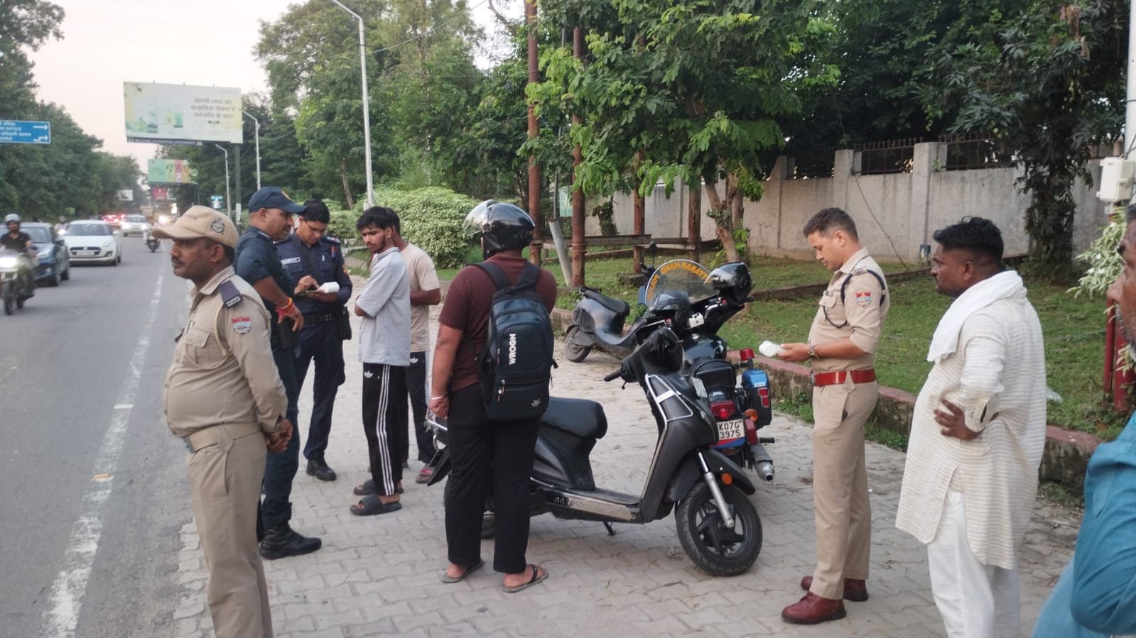 चेकिंग के दौरान वाहनों के कागज़ात, ड्राइविंग लाइसेंस एवं अन्य दस्तावेज़ों की जाँच की गई।
