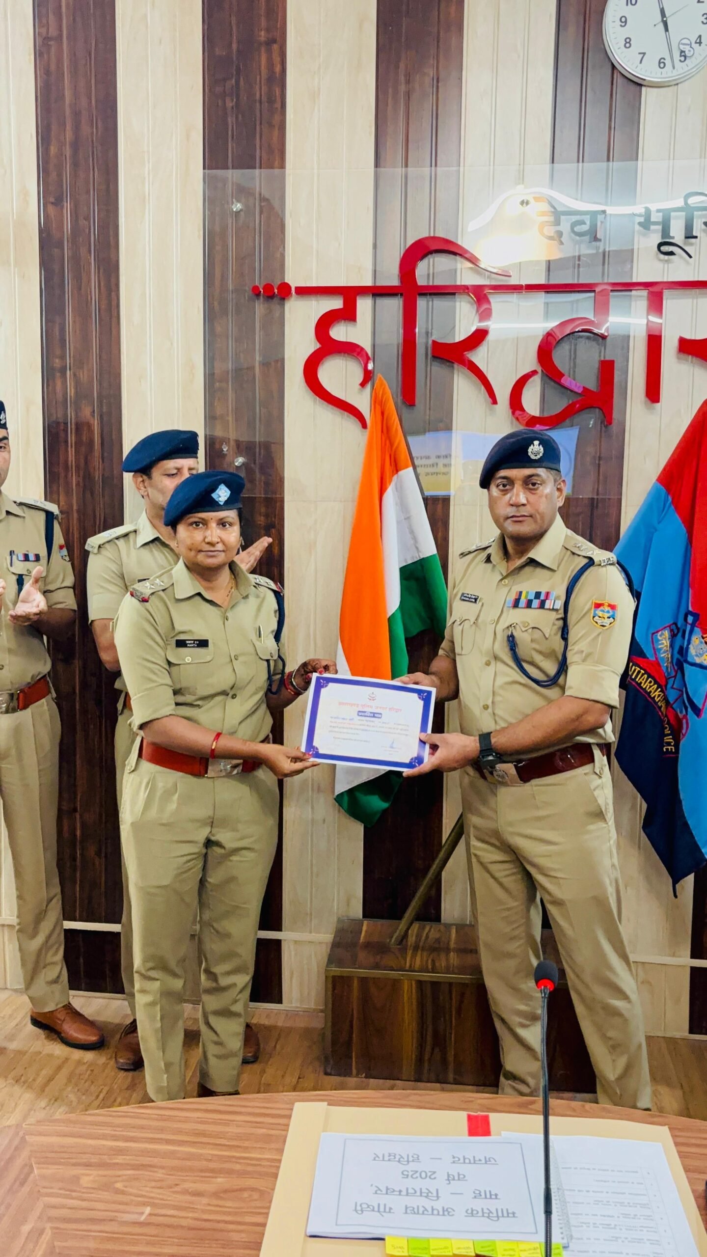 तत्पश्चात श्री डोबाल द्वारा फिल्ड में विभिन्न अपराधों के अनावरण में महत्वपूर्ण भागीदारी निभाने एवं कठोर परिश्रम के साथ अपनी नैतिक जिम्मेदारी निभाते हुए समाज के बीच पुलिस की छवि उज्जवल करने के लिए बतौर पर्सन ऑफ द मंथ चयनित 34 पुलिस कर्मियों को प्रमाण पत्र देकर सम्मानित किया।