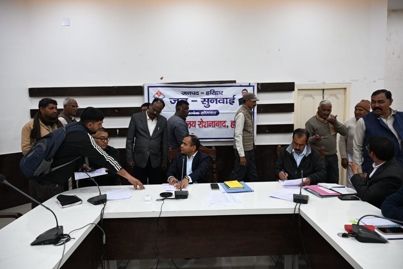 हरिद्वार। जनपदवासियों की समस्याओं का त्वरित निराकरण करने के उद्देश्य से जिलाधिकारी मयूर दीक्षित की अध्यक्षता में जिला कार्यालय सभागार में जन सुनवाई कार्यक्रम आयोजित किया गया, जिसमें विभिन्न विभागों से संबंधित 51 शिकायते/ समस्याएं दर्ज कराई गई जिसमें से 28 समस्याओं का मौके पर निराकरण किया गया शेष समस्याओं को निस्तारण हेतु संबंधित विभागों को प्रेषित किया गया।