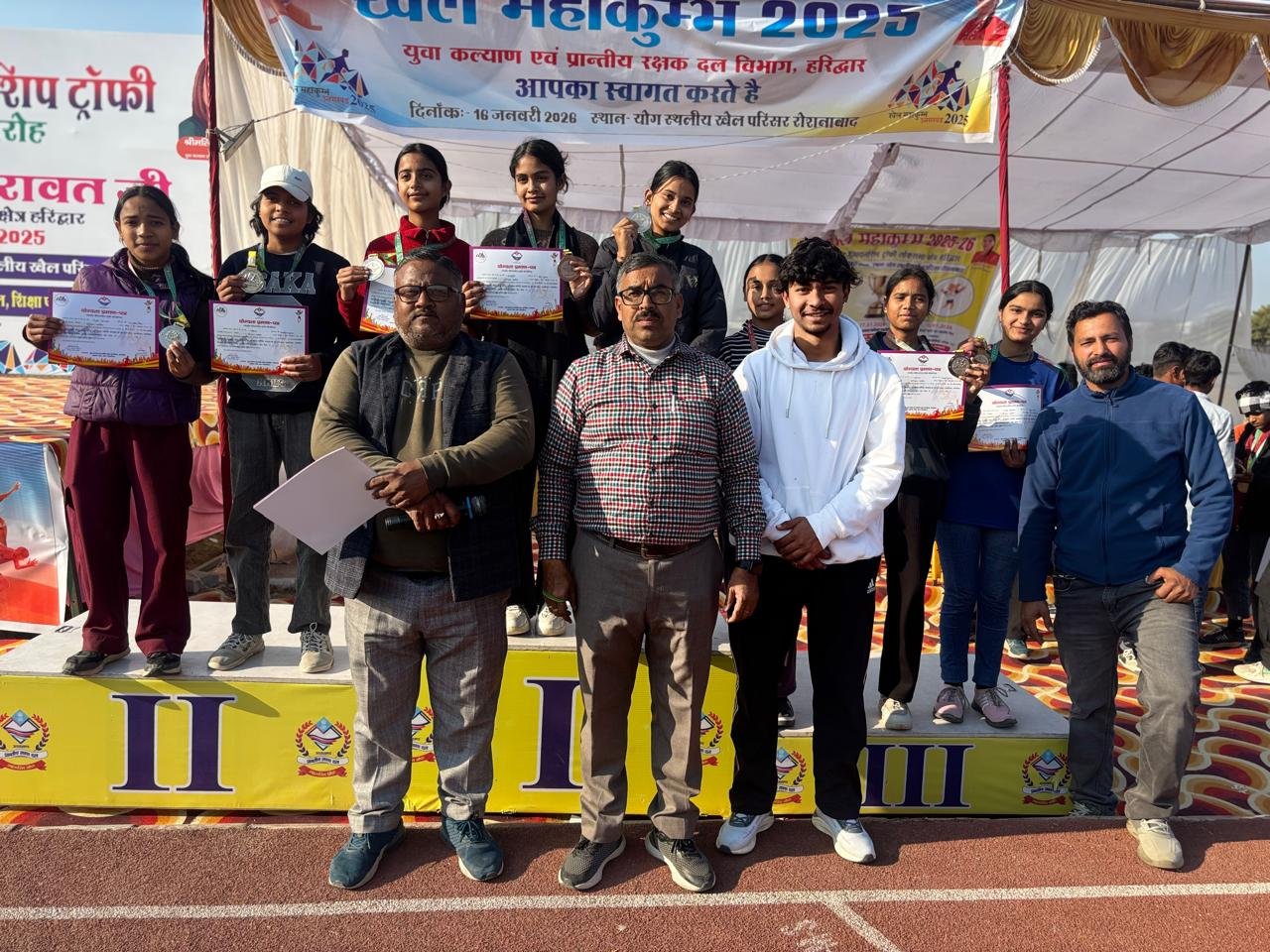 हरिद्वार ।खेल महाकुम्भ 2025-26 के अन्तर्गत संसदीय क्षेत्र स्तर पर मा० लोकसभा सांसद चैम्पियनशिप ट्रॉफी का आयोजन के तीसरे दिन के परिणाम निम्नानुसार रहे विजेता विधानसभा का नाम आयुवर्ग खेलविधा प्राप्त स्थान ऋषिकेश अण्डर 19 बालिका रस्साकसी प्रथम द्वितीय ज्वालापुर ऋषिकेश अण्डर 19 बालक रस्साकसी प्रथम हरिद्वार शहर द्वितीय कलियर तृतीय ऋषिकेश अण्डर 14 बालिका रस्साकसी प्रथम हरिद्वार ग्रामीण द्वितीय ज्वालापुर तृतीय ज्वालापुर अण्डर 14 बालक रस्साकसी प्रथम द्वितीय तृतीय डोईवाला कलियर इस अवसर पर नोड़ल खेल महाकुम्भ 2025 युवा कल्याण विभाग, श्री मुकेश कुमार भट्ट, प्रशासनिक अधिकारी, युवा कल्याण विभाग, हरिद्वार श्री जितेन्द्र पुण्डीर, खेल विभाग के खेल समन्वयक, शिक्षा विभाग के खेल शिक्षक तथा युवा कल्याण विभाग से अवैतनिक व्यायाम/खेल प्रशिक्षक तथा अन्य विभागीय कार्मिक उपस्थित रहे। प्रतियोगिता का संचालन नोडल सांसद चैम्पियनशिप ट्रॉफी, हरिद्वार श्री मुकेश कुमार भट्ट के सफल निर्देशन में किया गया।