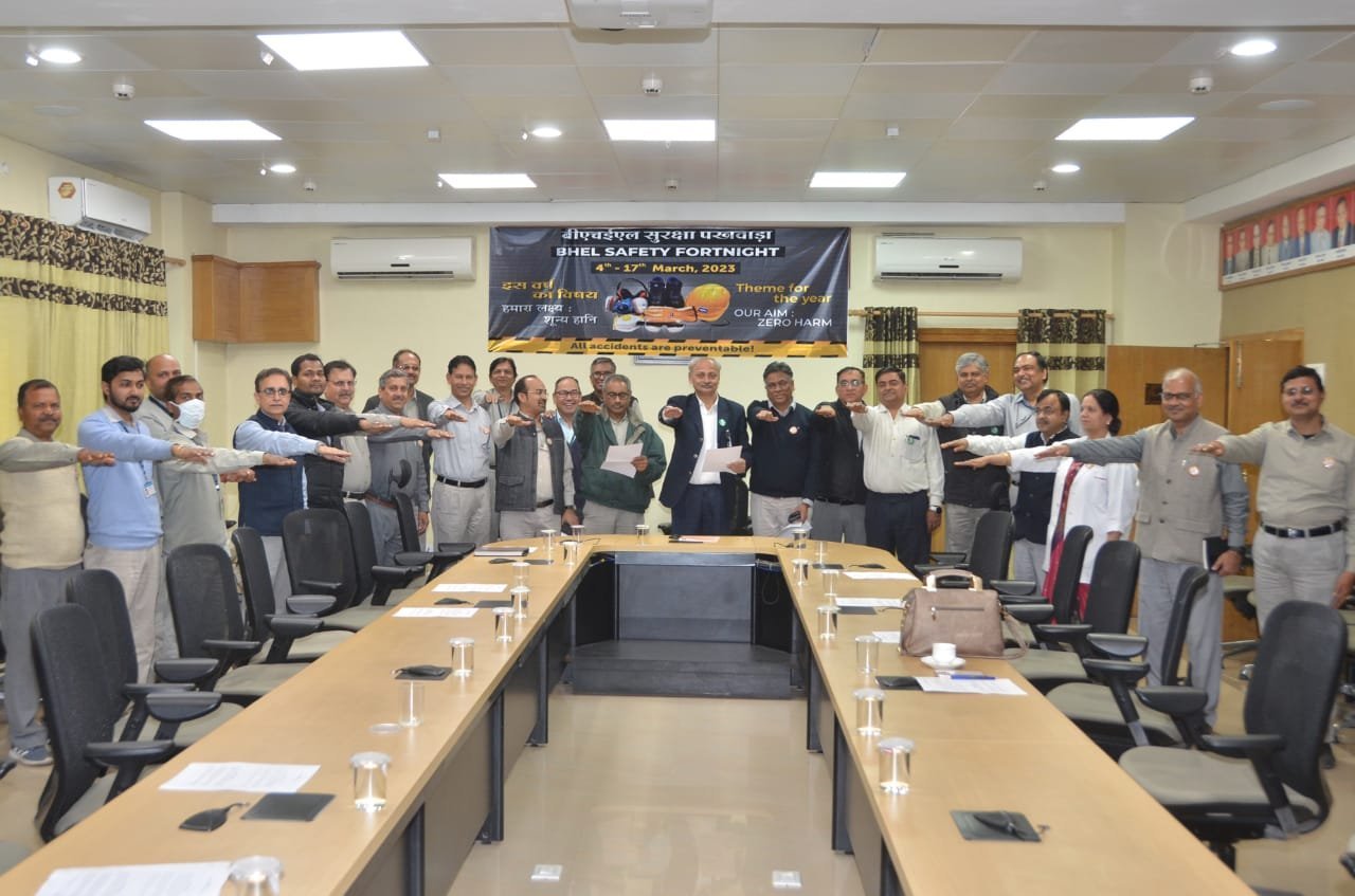 हरिद्वार। बीएचईएल हरिद्वार में 52वें राष्ट्रीय सुरक्षा दिवस को बीएचईएल सुरक्षा पखवाड़े के रुप में मनाया जा रहा है। 4 मार्च से 17 मार्च तक आयोजित होने वाले इस वर्ष के सुरक्षा पखवाड़ा का विषय है “ हमारा लक्ष्य, शून्य हानि”। पखवाड़े का शुभारम्भ बीएचईएल हरिद्वार के कार्यपालक निदेशक श्री प्रवीण चन्द्र झा का सुरक्षा संदेश प्रसारित कर किया गया। साथ ही महाप्रबंधक (प्रभारी) सीएफएफपी श्री वी. के. रायजादा ने महाप्रबंधकों एवं वरिष्ठ अधिकारियों को सुरक्षा शपथ दिलायी।