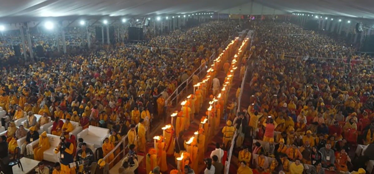 इस अवसर पर केन्द्रीय रक्षामंत्री श्री राजनाथ सिंह वर्चुअल जुडे़ और स्वयंसेवकों को संबोधित किया। उन्होंने कहा कि गायत्री परिवार का मानवता के विकास के लिए किया जा रहा कार्य अतुलनीय है। संस्कृति की रक्षा से ही सीमा की सुरक्षा सुनिश्चित है। उन्होंने कहा कि पं0 श्रीराम शर्मा आचार्य जी ने व्यक्ति की चेतना तक पहुँचने का कार्य किया। उन्होंने सिद्ध किया कि विज्ञान और अध्यात्म एक-दूसरे के विरोधी नहीं, बल्कि एक-दूसरे के पूरक हैं। इससे पूर्व शताब्दी समारोह के दलनायक डॉ चिन्मय पण्ड्या ने कहा कि वैदिक परंपरा की वास्तविक आधारशिला अंतःकरण में निहित विश्वास, निष्ठा, समर्पण, संवेदना और संकल्पना को जागृत करना है। उन्होंने कहा कि दीप महायज्ञ केवल एक अनुष्ठान नहीं, बल्कि खंड-खंड में बिखरी चेतना को अखंड ज्योति में रूपांतरित करने की जीवन साधना है। इस माध्यम से पूज्य गुरुदेव पं. श्रीराम शर्मा आचार्य ने जीवन रत्नों सदाचार, सेवा और कर्तव्यबोध का संदेश जन-जन तक पहुँचाया। यही प्रक्रिया व्यक्ति निर्माण से युग परिवर्तन की दिशा प्रशस्त करती है।