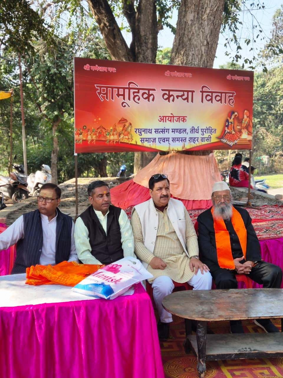 विवाह संस्कार का कार्य आचार्य पंडित वासुदेव मिश्रा के द्वारा विधि विधान के साथ संपन्न कराया गया। कार्यक्रम में विवाह संपन्न के बाद सभी लोगों के लिए भोज का आयोजन किया गया, जिसमें हजारों लोगों ने प्रेम पूर्वक प्रसाद ग्रहण किया। कार्यक्रम को सफल बनाने में वरिष्ठ तीर्थ पुरोहित पंडित उमाशंकर वशिष्ठ, मंत्री सचिन कौशिक,