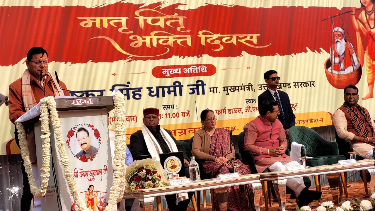 मातृ पितृ भक्त दिवस के अवसर पर प्रदेश के मुखिया युवा मुख्यमंत्री आदरणीय पुष्कर सिंह धामी जी एवं सम्मानित अतिथियों के द्वारा भाजपा वरिष्ठ नेता स्वर्गीय उमेश अग्रवाल जी के चित्र पर पुष्प अर्पित कर श्रद्धा सुमन अर्पित किए।
