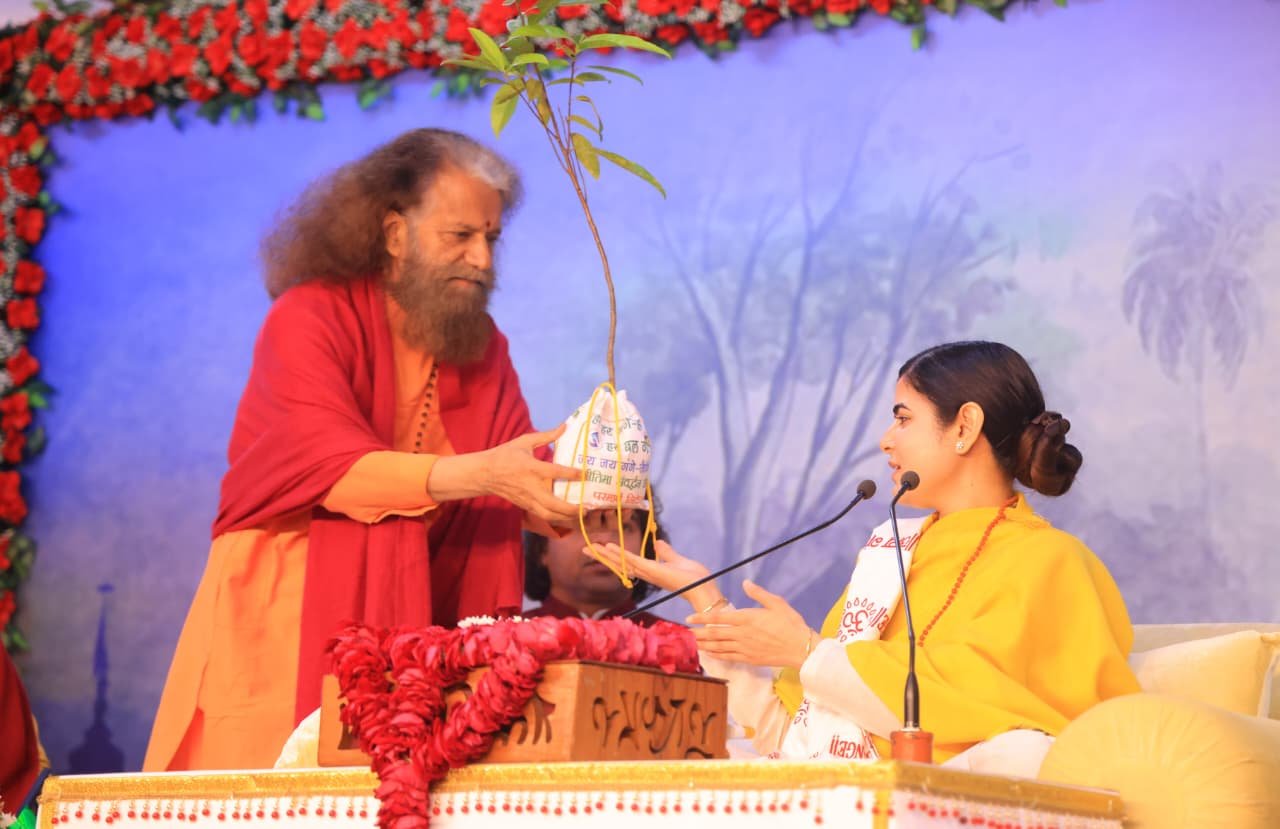 स्वामी जी ने कथावाचक देवी चित्रलेखा जी और जांगिड सेवा संघ के पदाधिकारियों को रूद्राक्ष का पौधा भेंट कर हरित कथाओं के आयोजन का संदेश दिया।