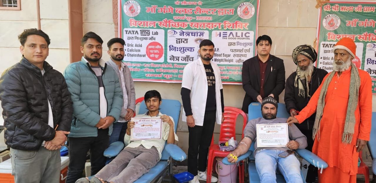 कार्यक्रम के मुख्य अतिथि रानीपुर विधायक आदेश चौहान ने कहा कि रक्तदान महादान है, खास बात यह है कि रक्तदान करने वाले व्यक्ति को भी नहीं पता होता है कि उसका रक्त किसके जीवन की रक्षा में काम आ रहा है। उन्होंने कहा महंत आलोक गिरी का प्रयास सराहनीय है। मां गंगे ब्लड सेंटर बैंक सेंटर के प्रभारी एनएस नेगी ने कहा कि शिविर में विशेषज्ञ चिकित्सकों द्वारा प्रतिभागियों की स्वास्थ्य जांच कर आवश्यक परामर्श एवं दिशा-निर्देश प्रदान किए गए। वहीं करीब 30 युनिट ब्लड एकत्र किया गया। कार्यक्रम संयोजक महंत आलोक गिरी महाराज ने कहा कि आयोजन का मुख्य उद्देश्य समाज के वंचित एवं जरूरतमंद वर्गों तक स्वास्थ्य सेवाएं पहुंचाना, जनस्वास्थ्य के प्रति जागरूकता बढ़ाना तथा रक्तदान जैसे जीवनदायी कार्य को प्रोत्साहित करना रहा। कार्यक्रम के दौरान सेवाभाव, अनुशासन एवं सामाजिक उत्तरदायित्व की भावना स्पष्ट रूप से परिलक्षित हुई। शिविर में पत्रकार शिवांग अग्रवाल, पं शशि भारद्वाज, सहित अन्य लोगों ने रक्तदान किया।