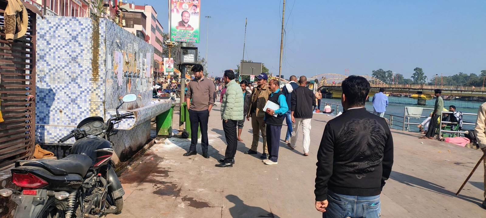 नगर आयुक्त नंदन कुमार (IAS) ने आज नाई घाट, सुभाष घाट, हर की पैड़ी चौक, संजय पुल एवं धनुष पुल क्षेत्र का औचक निरीक्षण किया। निरीक्षण के दौरान घाटों की सफाई व्यवस्था, अतिक्रमण नियंत्रण और समग्र व्यवस्थाओं की विस्तारपूर्वक समीक्षा की गई।