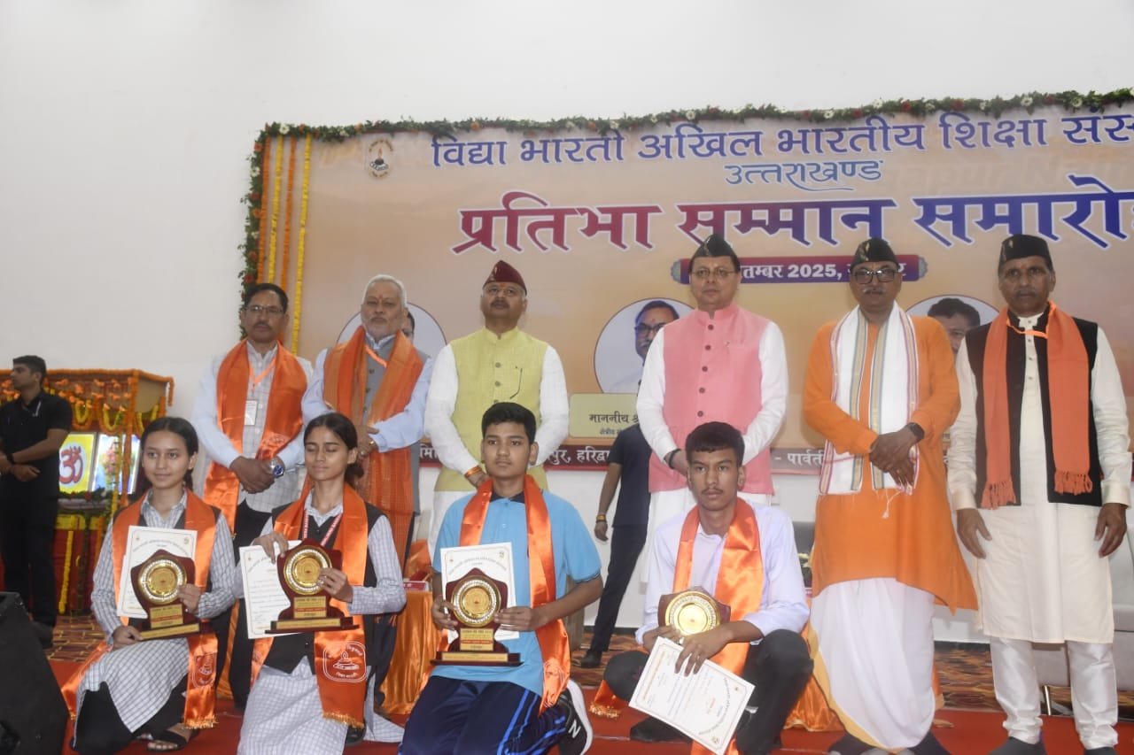 मुख्यमंत्री श्री पुष्कर सिंह धामी ने रविवार को नैनीताल के पार्वती प्रेमा जगाती सरस्वती विहार में विद्या भारती अखिल भारतीय शिक्षा संस्थान उत्तराखंड द्वारा आयोजित प्रतिभा सम्मान समारोह में उत्तराखंड बोर्ड की परीक्षा में विद्या भारती विद्यालयों के उत्कृष्ट स्थान प्राप्त अभ्यर्थियों को सम्मानित किया।मुख्यमंत्री ने उत्तराखंड बोर्ड परीक्षा में मैरिट लिस्ट में स्थान प्राप्त करने वाले छात्रों को बधाई देते हुए कहा कि यह सम्मान सभी में एक नई ऊर्जा का संचार करेेगा, नया उत्साह लाएगा तथा भविष्य में जीवन में आने वाली सभी परीक्षाओं में भी श्रेष्ठ प्रदर्शन करने के लिए प्रेरित करेेगा। मुख्यमंत्री ने कहा कि भारत की सनातन संस्कृति और राष्ट्रभक्ति के विचारों को आत्मसात करते हुऎ विद्या भारती अखिल भारतीय शिक्षा संस्थान शिक्षा के क्षेत्र में बडा योगदान दे रहा है। इसके स्पष्ट प्रमाण हैं कि यदि कोई भी कार्य अच्छी सोच के साथ कड़ी मेहनत के साथ निरंतर किया जाए तो उस कार्य को सफल होने से रोका नहीं जा सकता है। मुख्यमंत्री ने कहा कि राष्ट्रीय स्वयंसेवक संघ की स्थापना के शताब्दी वर्ष में ये कार्यक्रम आयोजित किए जा रहे हैं, इस विशिष्ट कार्यक्रम में उपस्थित होना उनके लिये गर्व की बात है।