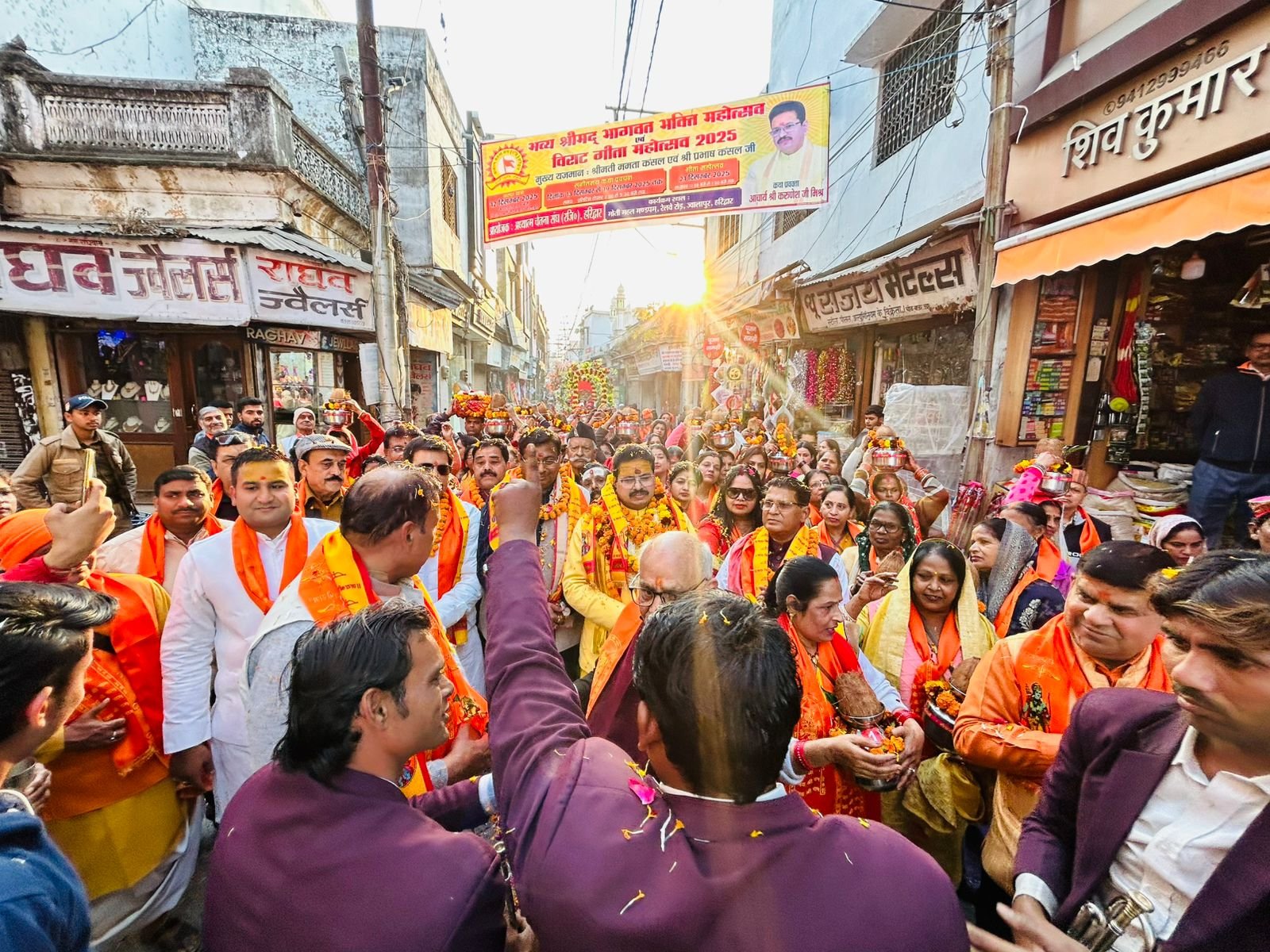 हरिद्वार। कलश पूजन के उपरान्त अध्यात्म चेतना संघ (रजि०) हरिद्वार द्वारा शुक्रवार को गंग नहर, जटवाड़ा पुल ज्वालापुर गोविन्द घाट तक बैंड-बाजों के साथ निकाली गयी भव्य ग्रंथ शोभा यात्रा के साथ ही संस्था द्वारा आयोजित किये जा रहे नौ दिवसीय विराट गीता महोत्सव एवं श्रीमद्भागवत भक्ति महायज्ञ का शुभारम्भ हो गया है।