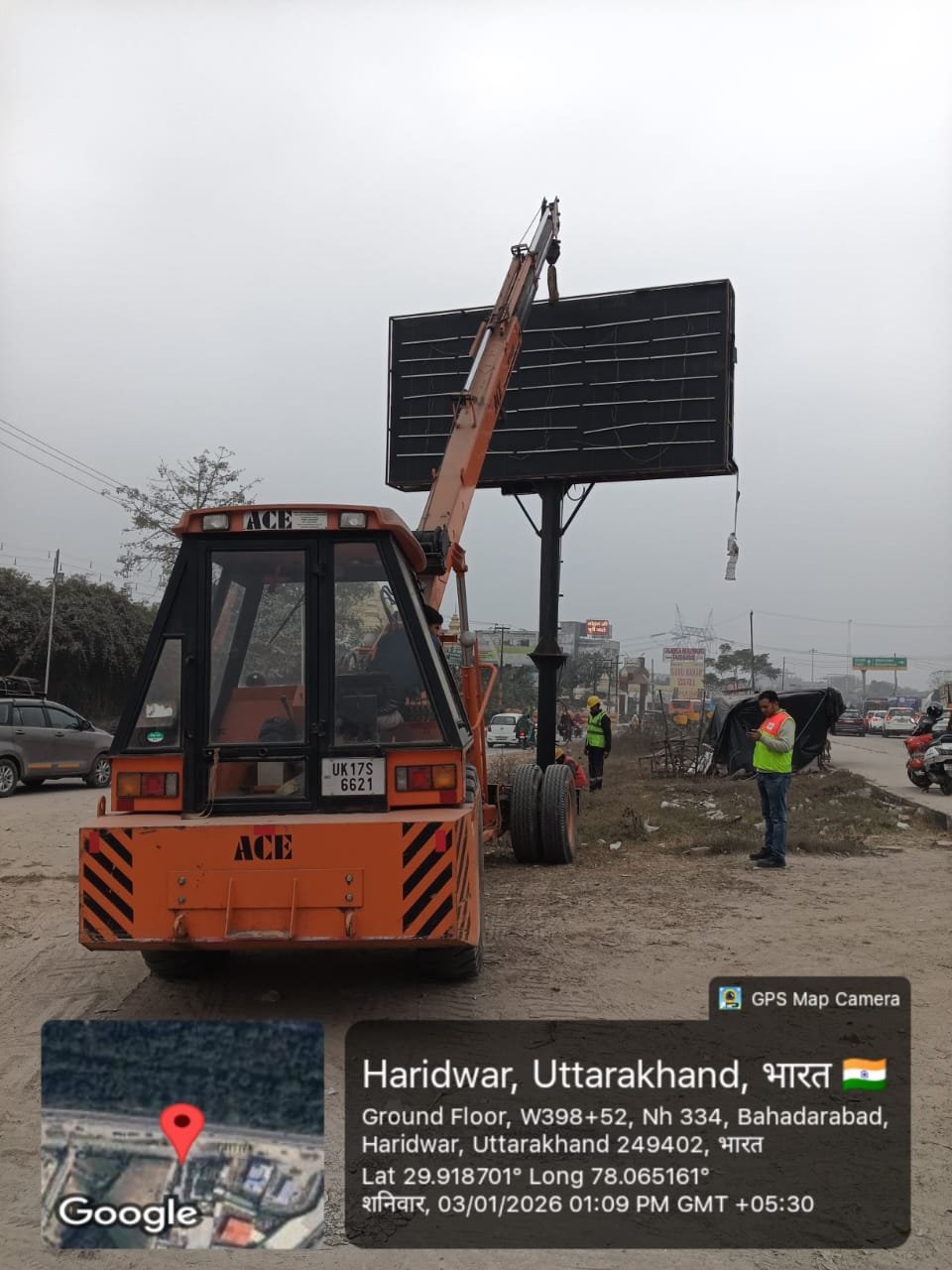 अधिशासी अभियंता एनएचएआई अतुल शर्मा ने अवगत कराया है कि जिलाधिकारी के निर्देशों के अनुपालन में राष्ट्रीय राजमार्ग संख्या 334 के किनारों से एवं रानीपुर झाल से बहादराबाद बाईपास क्षेत्रांतर्गत अवैध रूप एवं बिना अनुमति के लगाए गए बड़े बड़े यूनीपोल एवं होर्डिंग को राष्ट्रीय राजमार्ग प्राधिकरण द्वारा अधिकृत एजेंसी की टीम द्वारा हटाया जा रहा है। उन्होंने यह भी अवगत कराया है कि राष्ट्रीय राजमार्ग के किनारे बनाए गए खोखे, झुगी झोपड़ी को भी हटाया जा रहा है।
