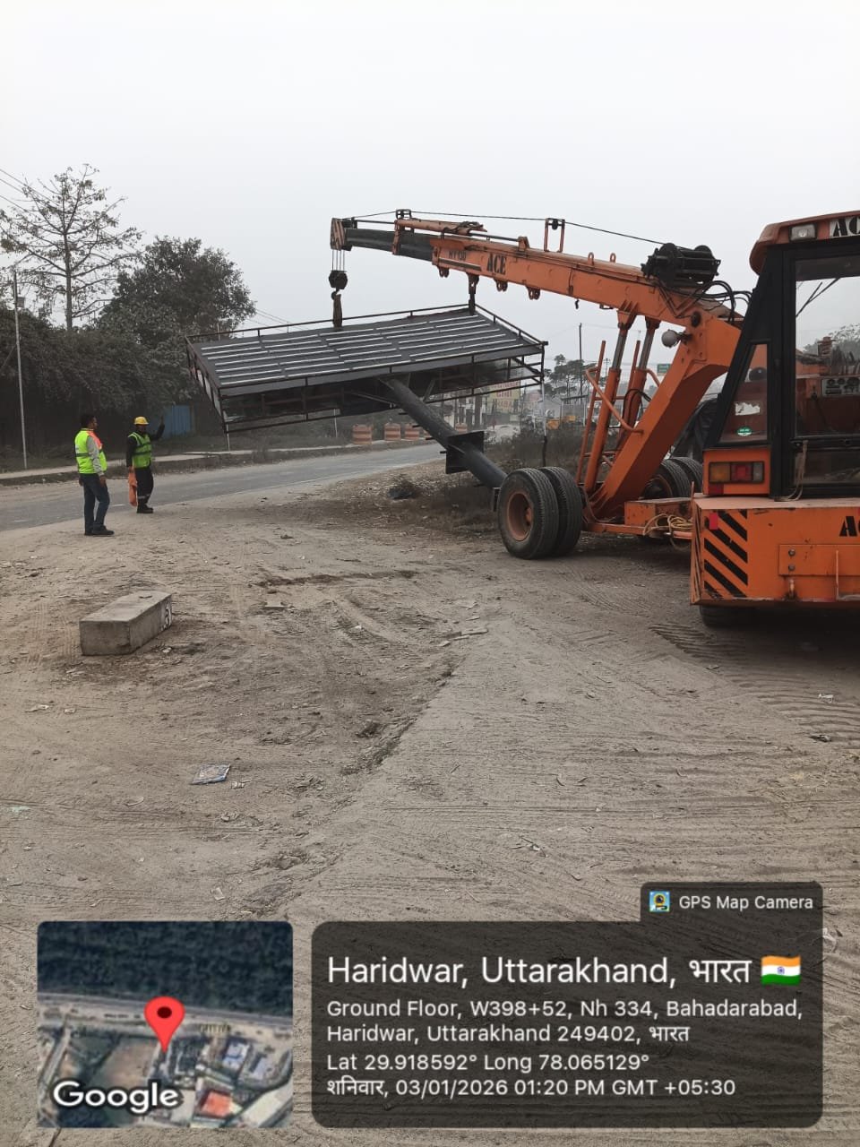 एनएचएआई द्वारा राष्ट्रीय राजमार्ग किनारे अवैध रूप से स्थापित किए गए यूनीपोल एवं होर्डिंग हटाने की कार्यवाही निरंतर जारी