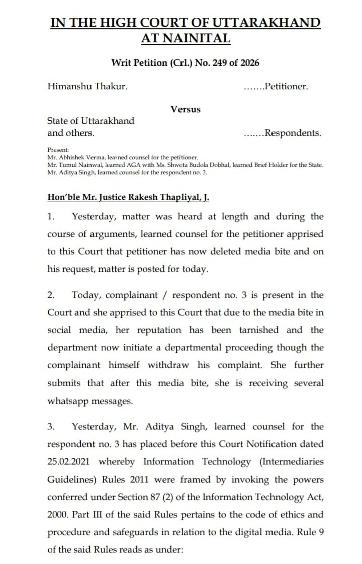 यह टिप्पणी न्यायमूर्ति राकेश थपलियाल की एकलपीठ ने हिमांशु ठाकुर बनाम राज्य सरकार व अन्य (रिट याचिका (क्रिमिनल) संख्या 249/2026) की सुनवाई के दौरान की।
