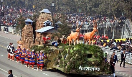 गढ़वाल की चारधाम यात्रा की भांति सरकार कुमाऊं में मंदिर माला मिशन के अंतर्गत पर्यटन बढ़ाने का प्रयास कर रही हैं इसी के दृष्टिगत प्रसिद्ध पौराणिक जागेश्वर धाम को दिखाया गया था। उत्तराखंड का प्रसिद्ध कॉर्बेट नेशनल पार्क, बारहसिंगा, उत्तराखंड का राज्य पशु कस्तूरी मृग, गोरल, देश की राष्ट्रीय पक्षी मोर जो उधमसिंह नगर में पाई जाती है, उत्तराखंड के प्रसिद्ध पक्षी घुघुती, तीतर, चकोर, मोनाल आदि, तथा उत्तराखंड की प्रसिद्ध ऐपन कला को प्रदर्शित किया गया था। झांकी के आगे और पीछे उत्तराखंड का नाम भी ऐपन कला से लिखा गया था।