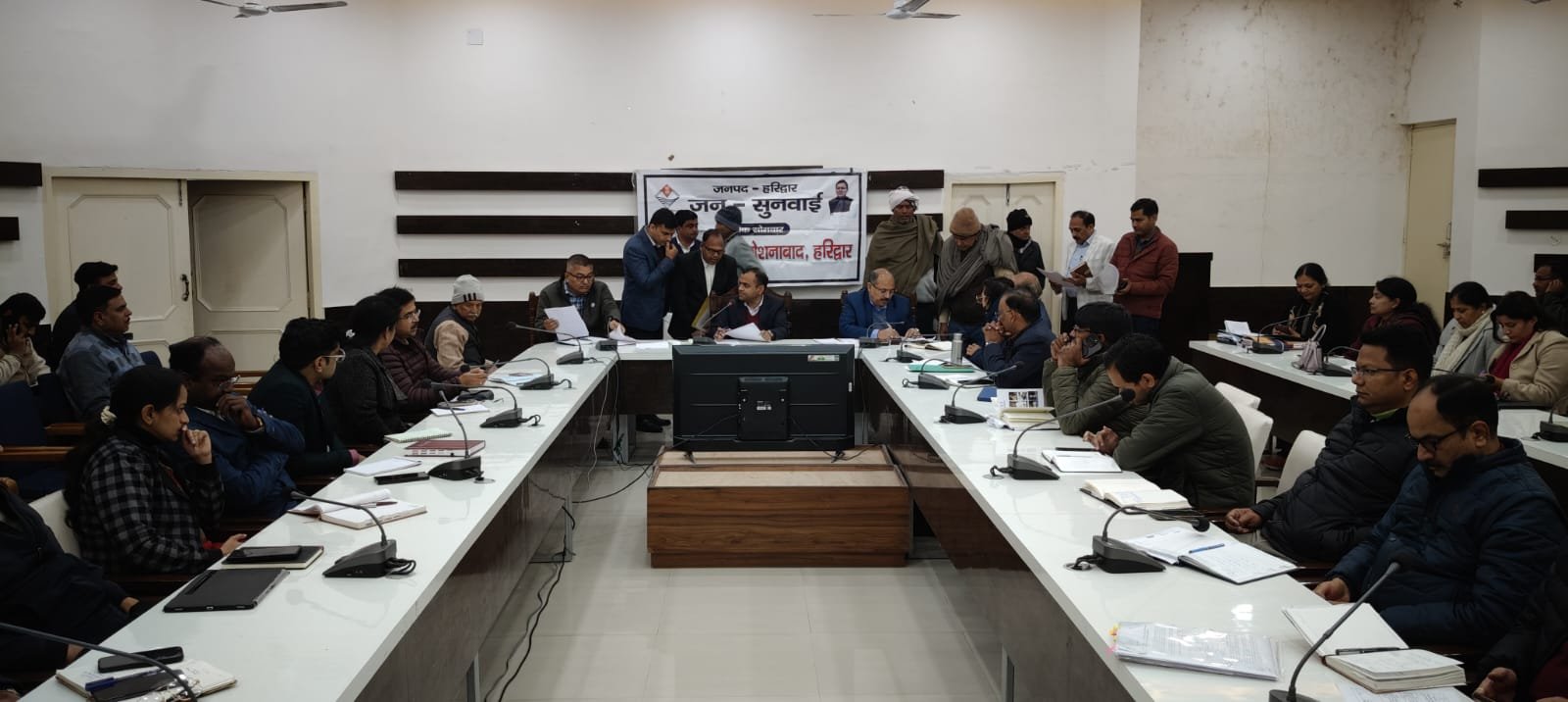बैठक में मुख्य विकास अधिकारी ललित नारायण मिश्रा ,अपर जिलाधिकारी दीपेंद्र सिंह नेगी, मुख्य चिकित्साधिकारी आर के सिंह, अधिशासी अभियंता सिंचाई ओमजी गुप्ता, सहायक परियोजना निर्देशक नलिनीत घिल्डियाल,मुख्य शिक्षा अधिकारी आशुतोष भंडारी, प्रोजेक्ट मैनेजर पेयजल निगम (गंगा)मीनाक्षी मित्तल,जिला पंचायतराज अधिकारी अतुल प्रताप सिंह,जिला अर्थ संख्या आधिकारी नलिनी ध्यानी,जिला आपदा प्रबंधन अधिकारी मीरा रावत, नोडल स्वजल चंद्रकांत मणि त्रिपाठी, परियोजना निर्देशक उरेडा वाई एस बिष्ट, सहित जिला स्तरीय सम्बन्धित अधिकारी एवं विभिन्न क्षेत्रों से आए फरियादी मौजूद रहे।