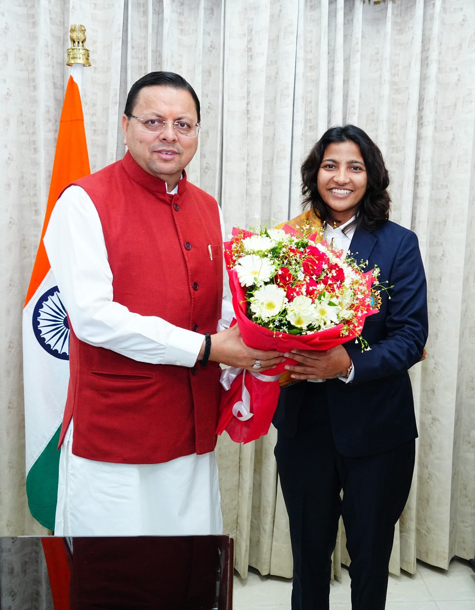 *महिला विश्व कप विजेता क्रिकेटर स्नेह राणा ने की मुख्यमंत्री श्री पुष्कर सिंह धामी से शिष्टाचार भेंट*